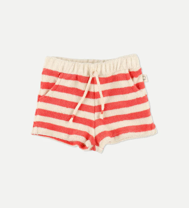 Organic Baby Shorts || Pink Ruby Toweling Stripes