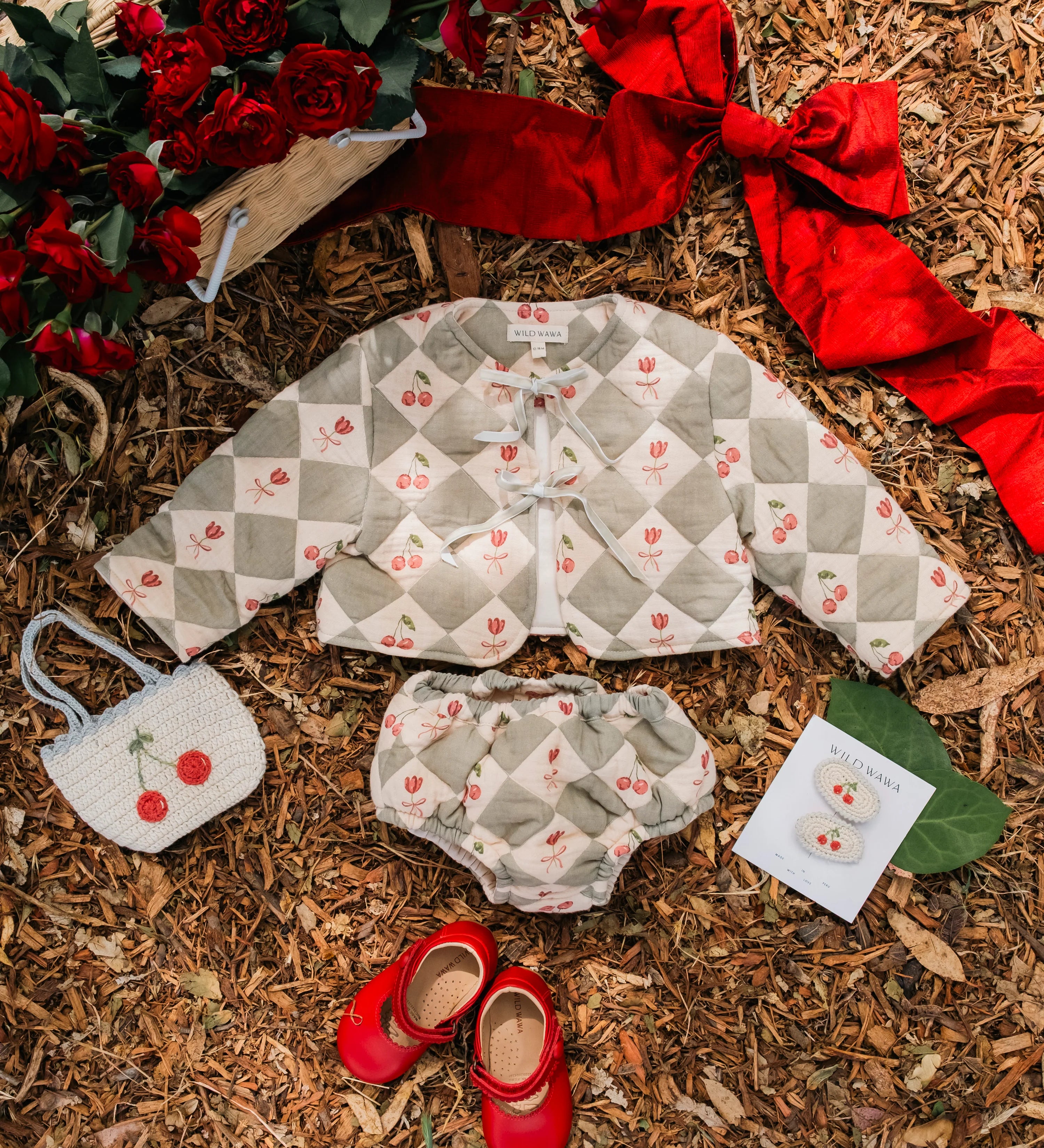 Ivy Dress || Cherry Patchwork Vintage Blue