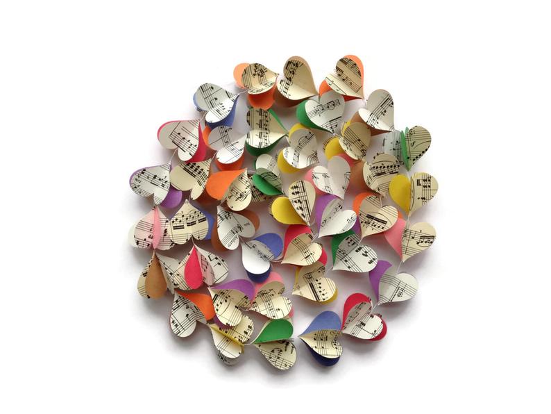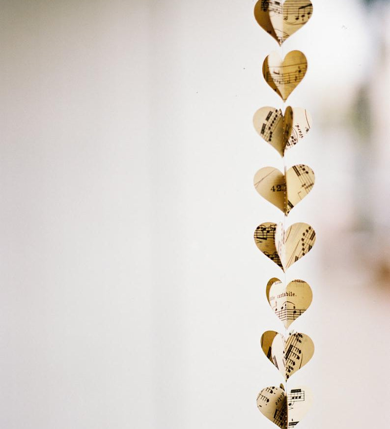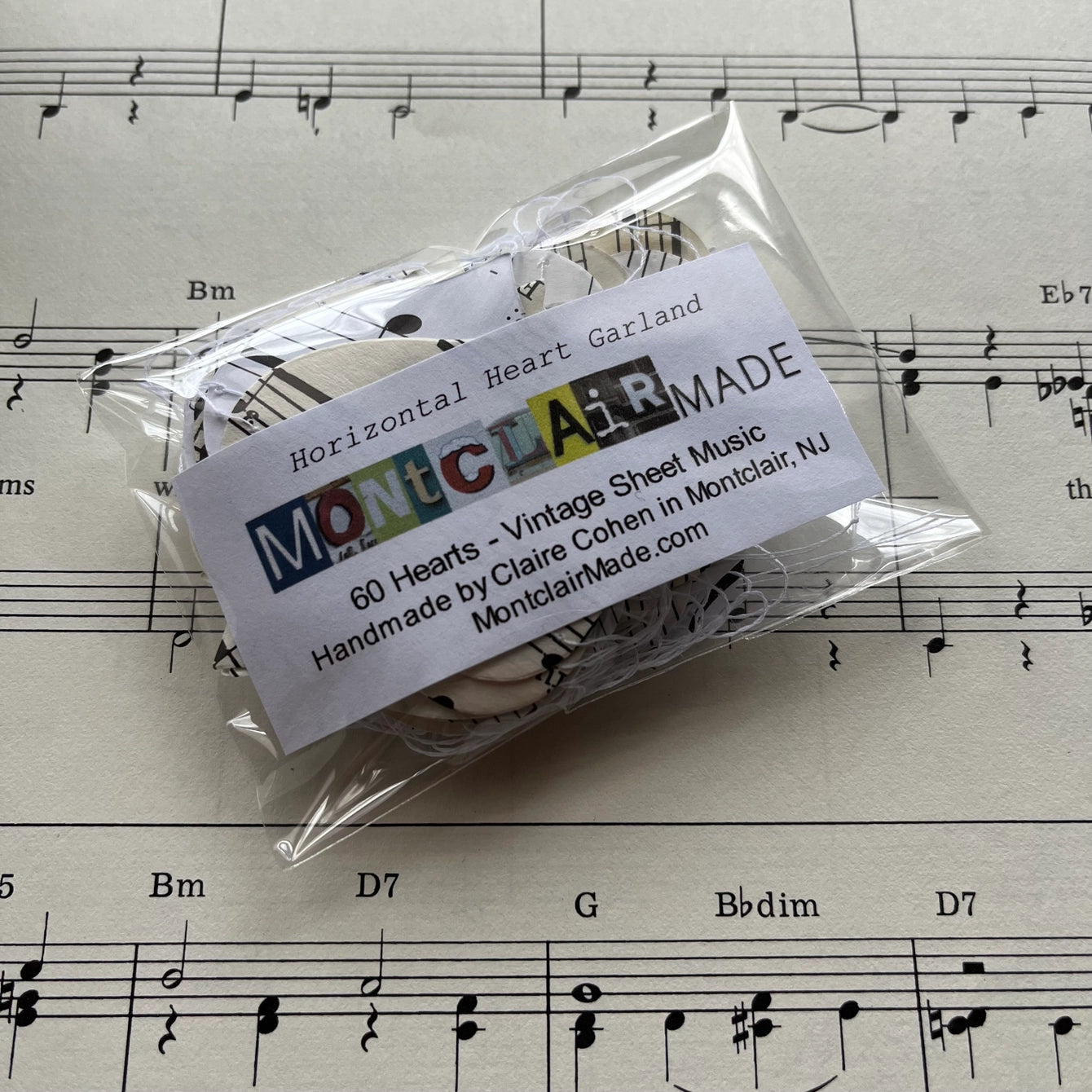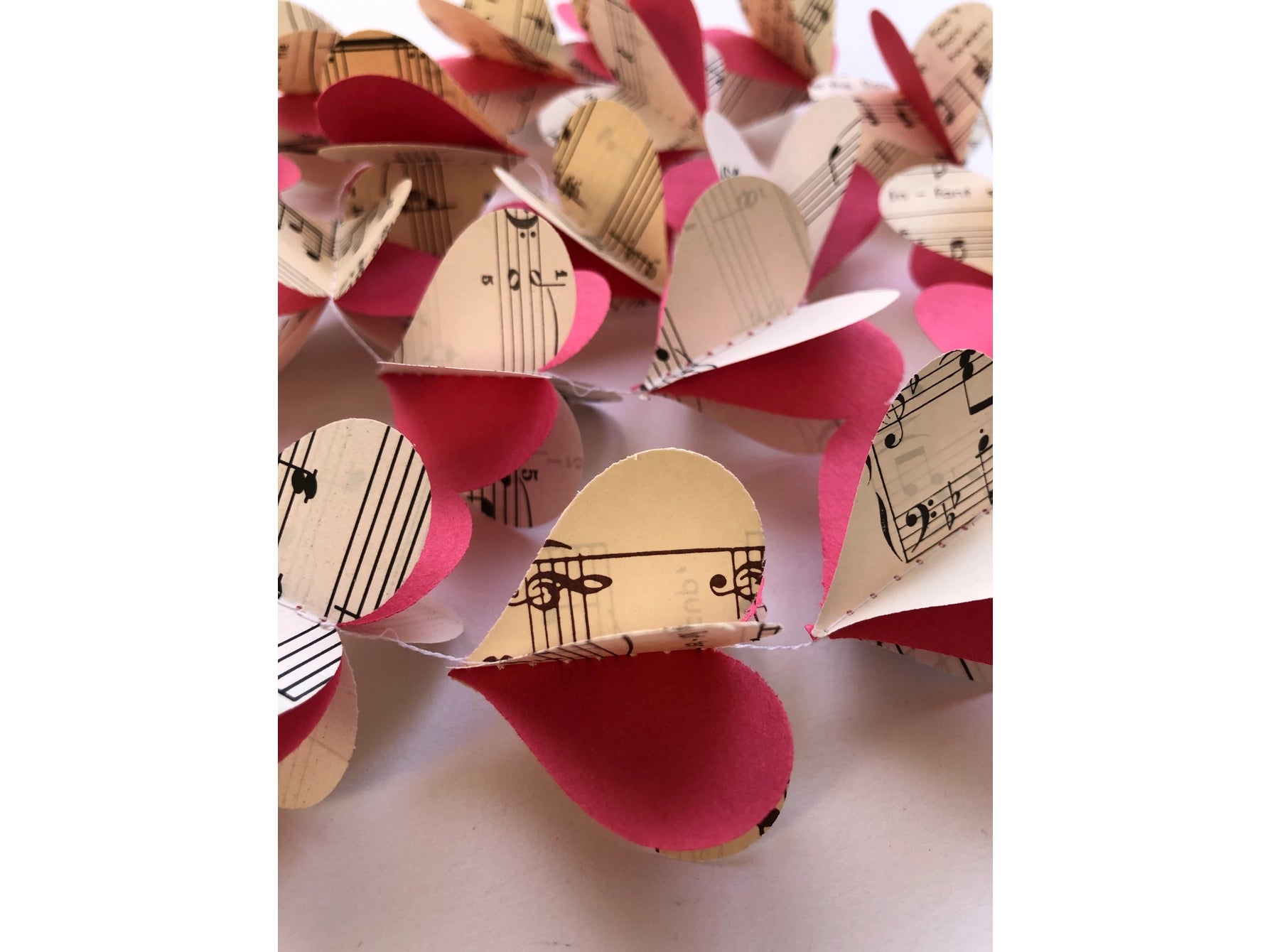 Horizontal Paper Heart Garland || Vintage Music Sheet