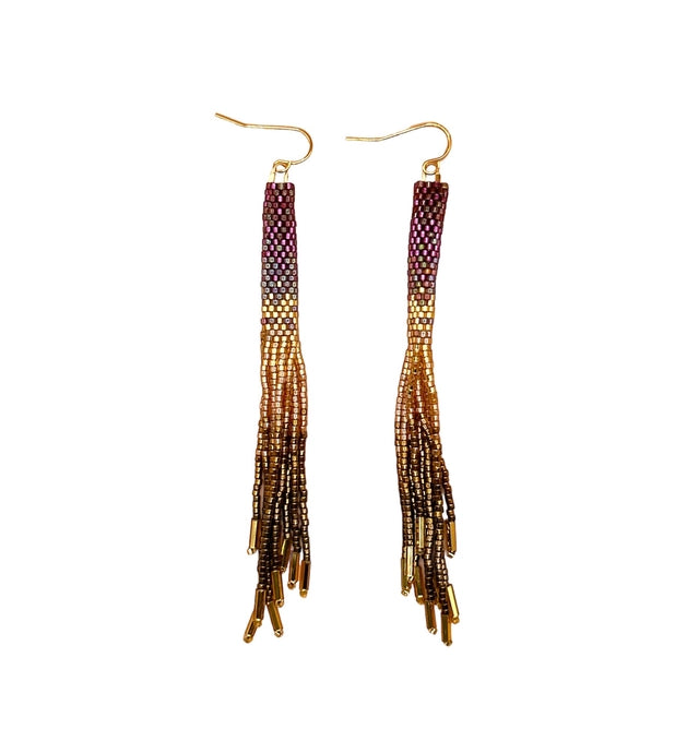 Beaded Handwoven Tropical Fringe Earrings || Wine/Magenta