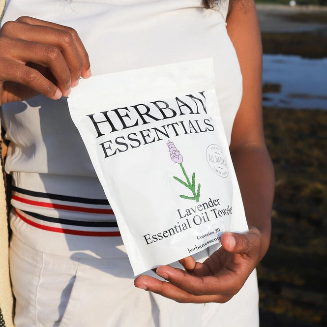Herban Essentials essential oil towelettes are made with the highest quality, pure lavender essential oil, which not only makes them smell amazing, but makes them naturally uplifting and rejuvenating as well. Lavender essential oil is naturally calming.