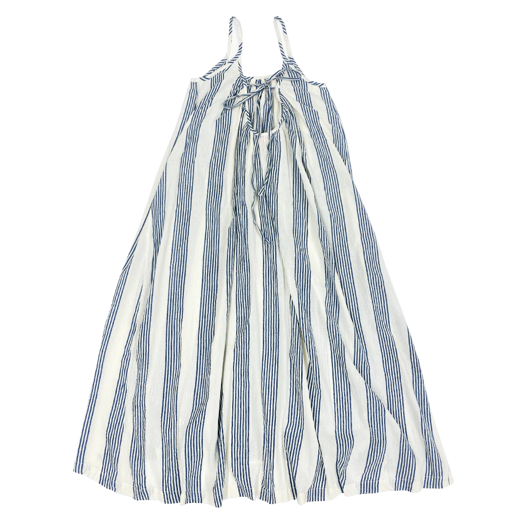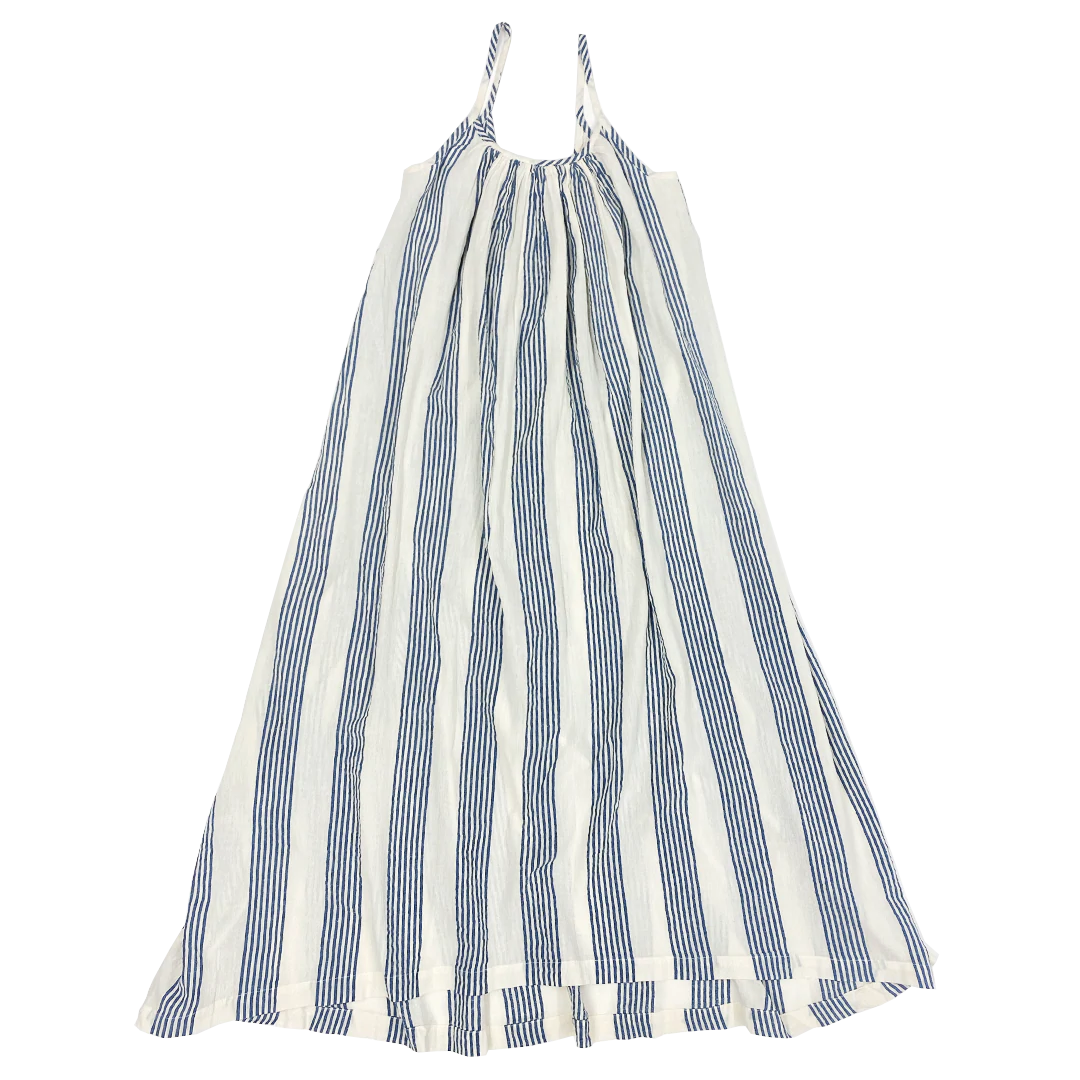 Vertical navy stripes create a flattering, slimming effect on the Women's Andie Dress, designed in cool white cotton gauze. The sleeveless silhouette makes it a go-to look whenever temperatures rise. Pairs perfectly with the coordinating girls', boys' and men's styles for a family-themed ensemble.