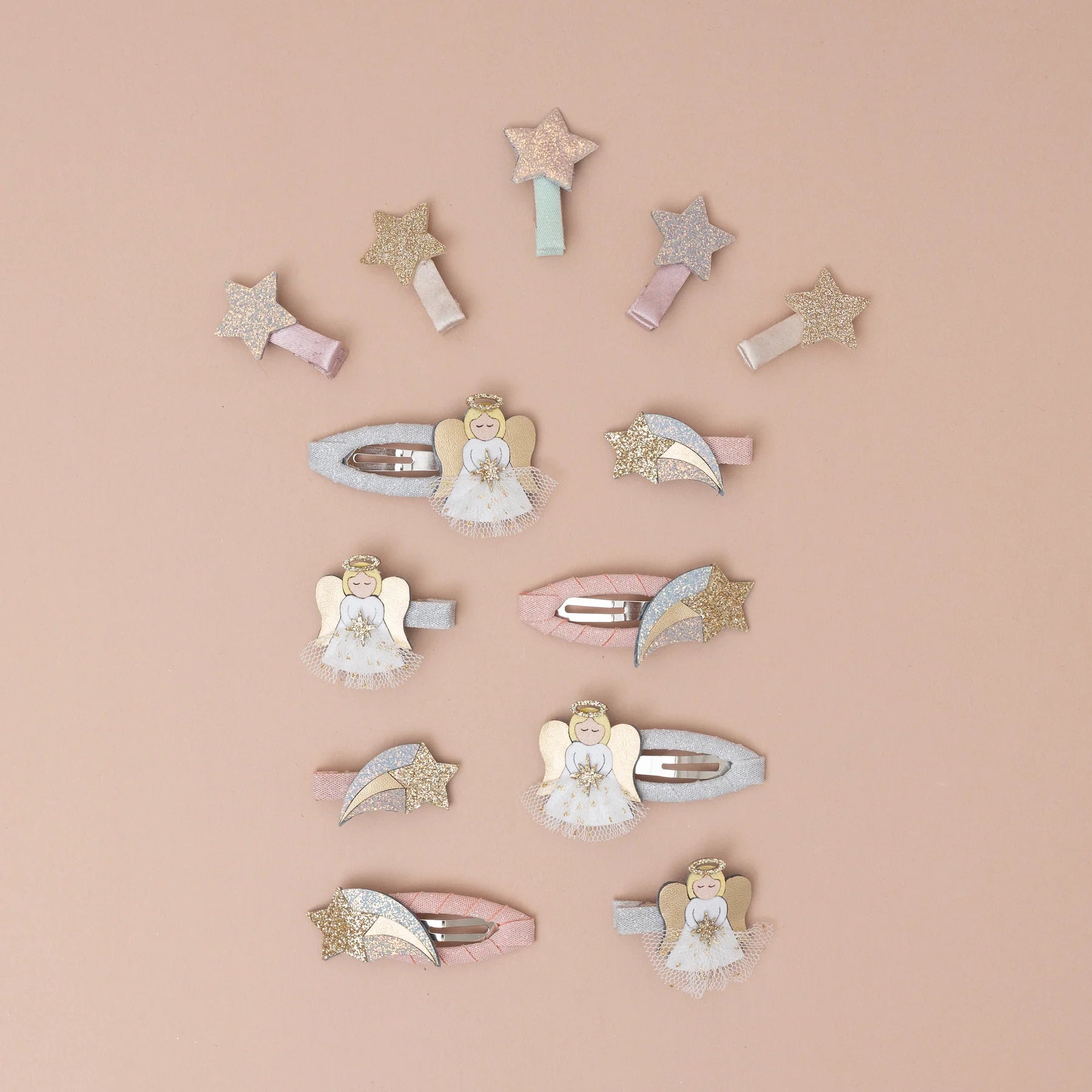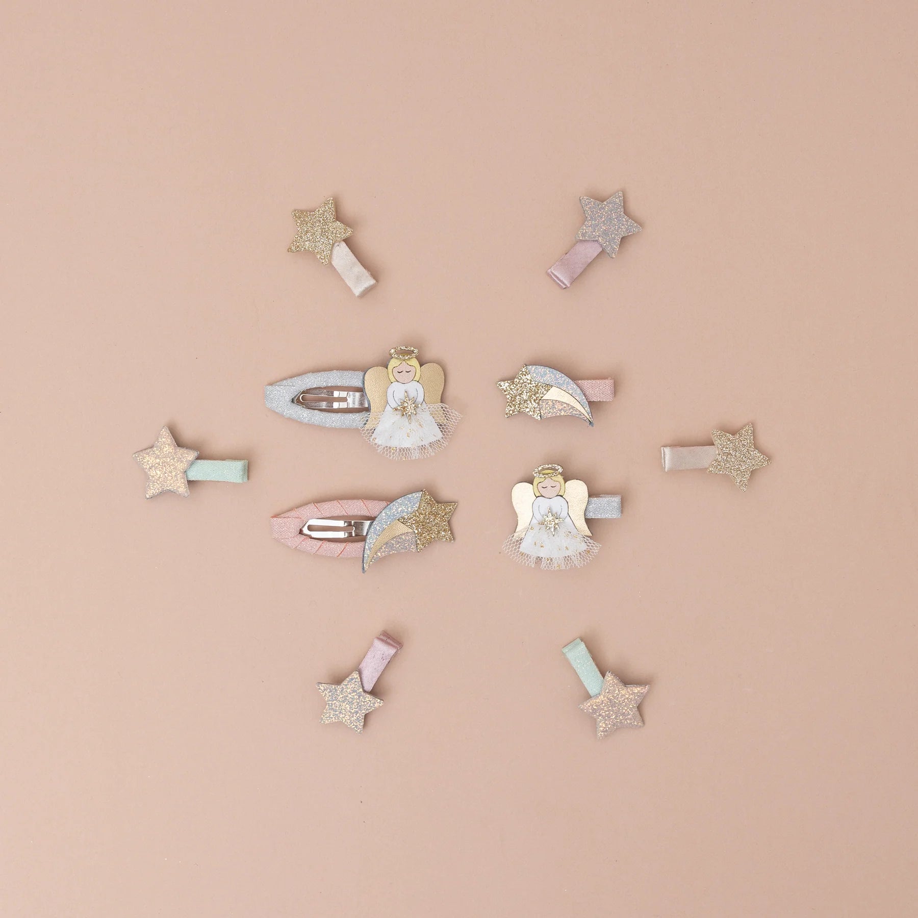 Add some angelic charm to your little one's hair with this adorable, shimmering four pack of clips! Perfect for creating super sweet styles this Christmas time.