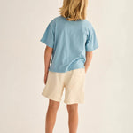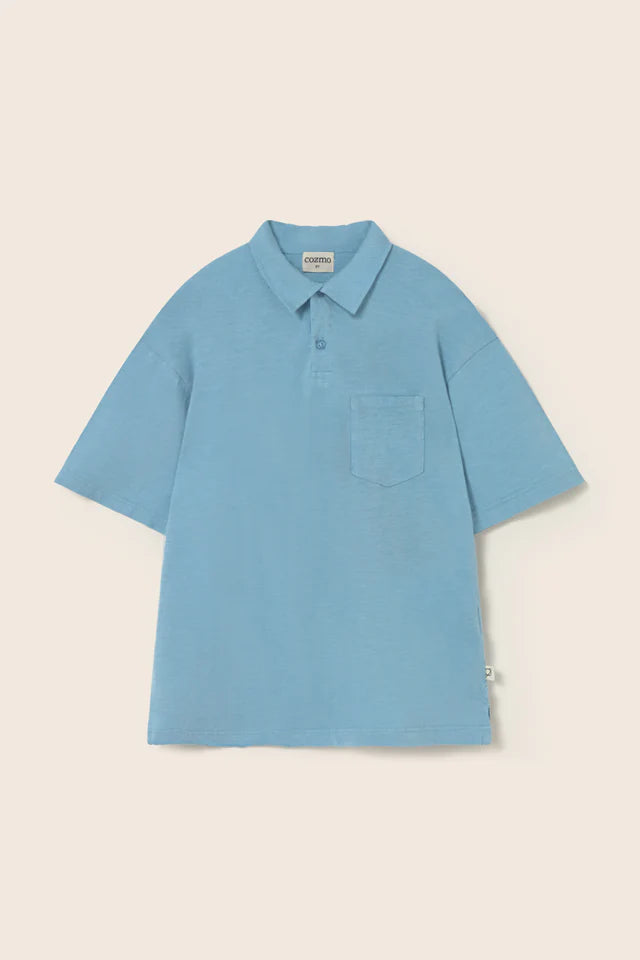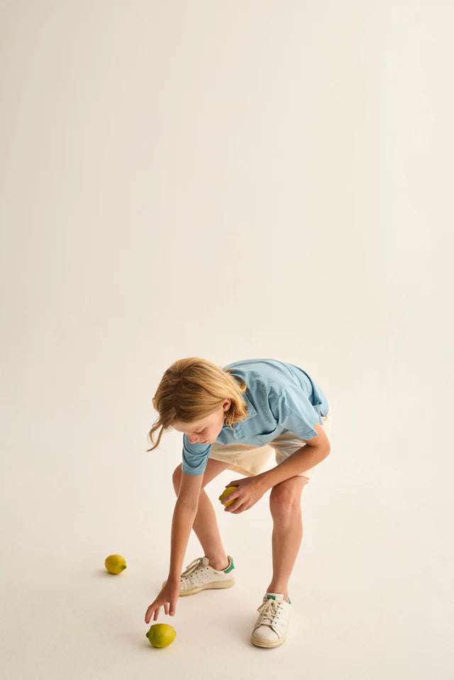 Boys’ polo T-shirt made from very lightweight slub cotton. It features a polo collar and front button placket lined with cotton voile, short sleeves, a chest patch pocket, and side slits for a classic, comfortable fit.