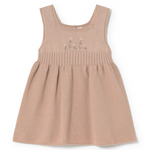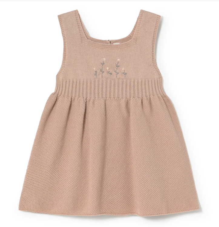The Aurora Embroidered Knit Dress in Candy combines breathable 100% organic cotton with delicate embroidered detailing, making it an ideal choice for spring wardrobes.