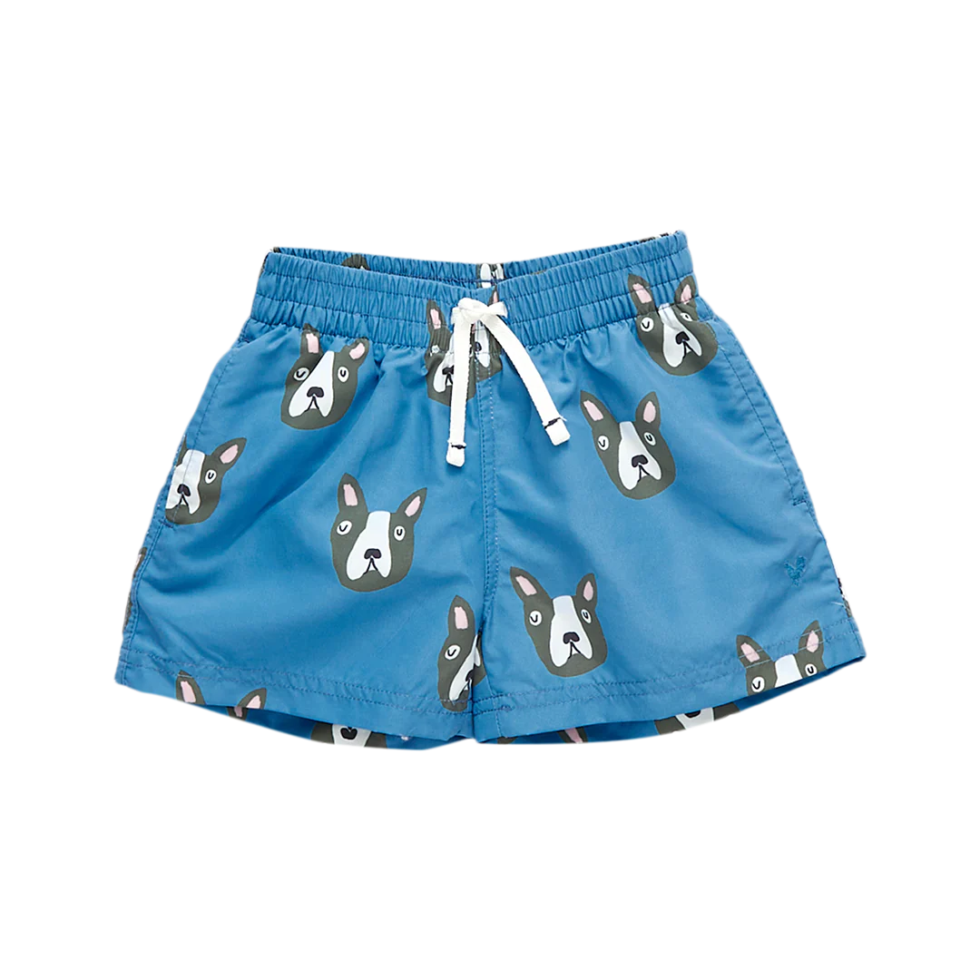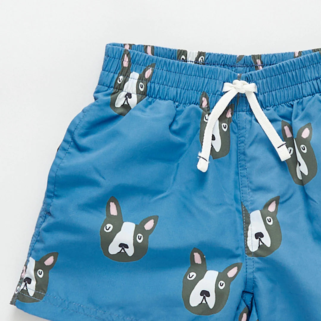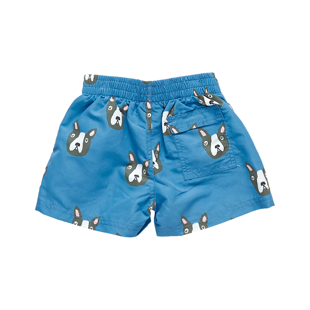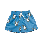 Baby Boys Swim Trunk || Blue Boston Terrier