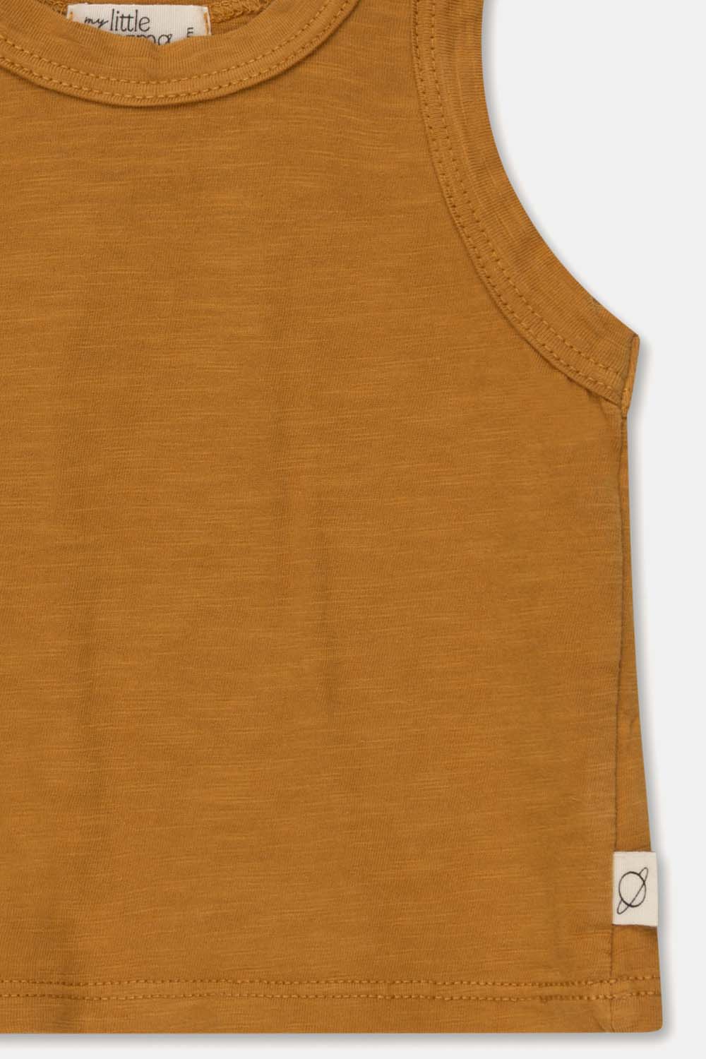 This organic baby tank is the perfect snug-fitting tee. Super versatile, it will look beautiful with a print bottom. Also, this organic baby tee is perfect for layering. It is made in 100% GOTS-certified organic slub cotton.