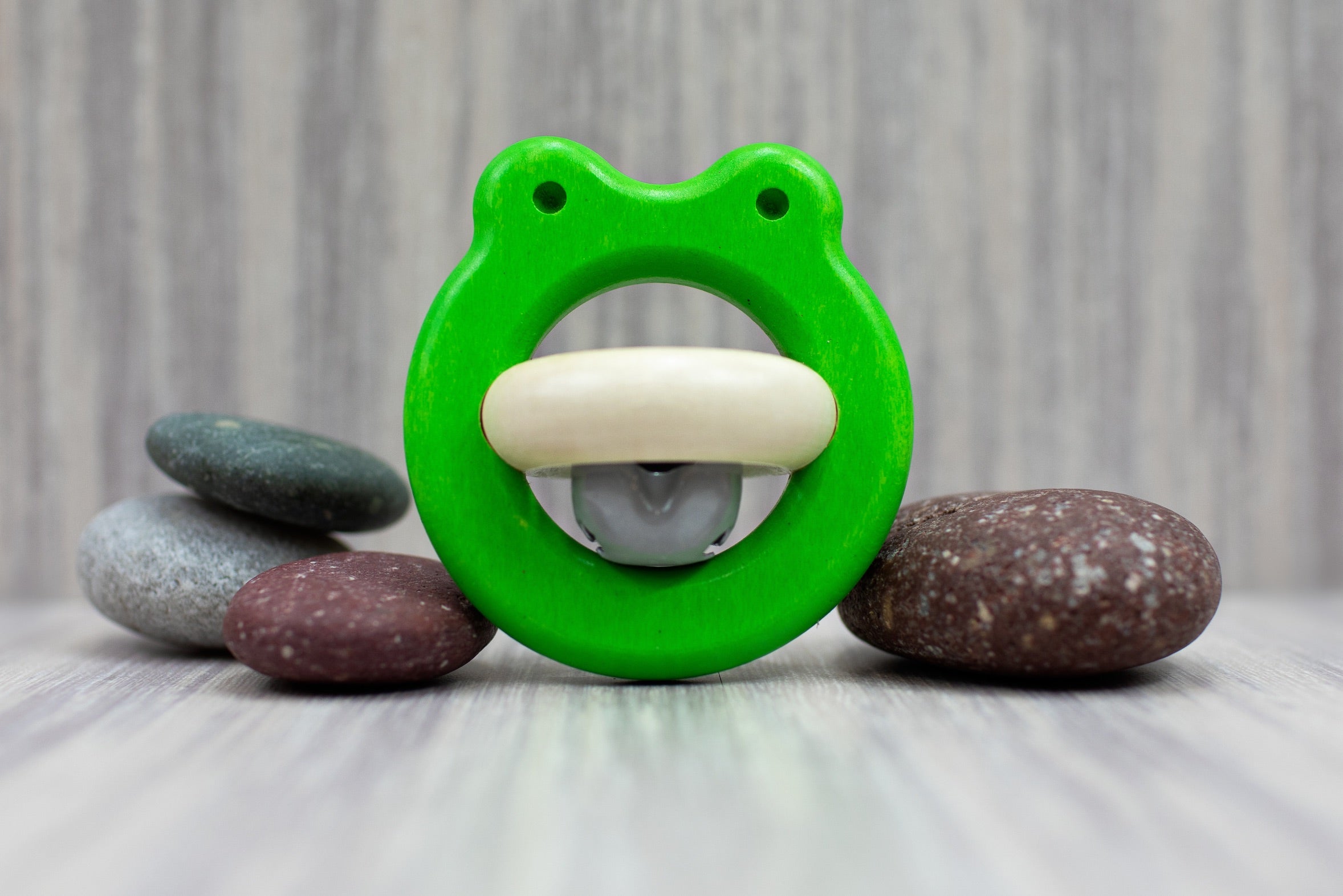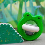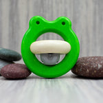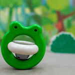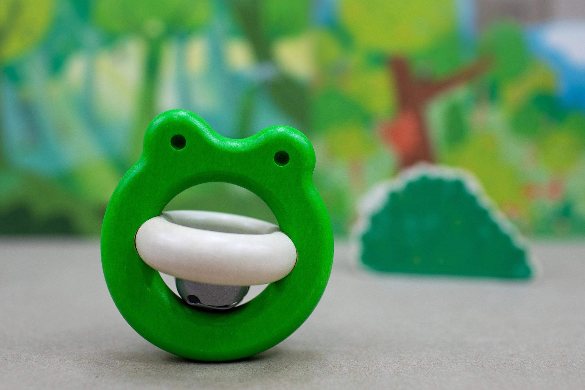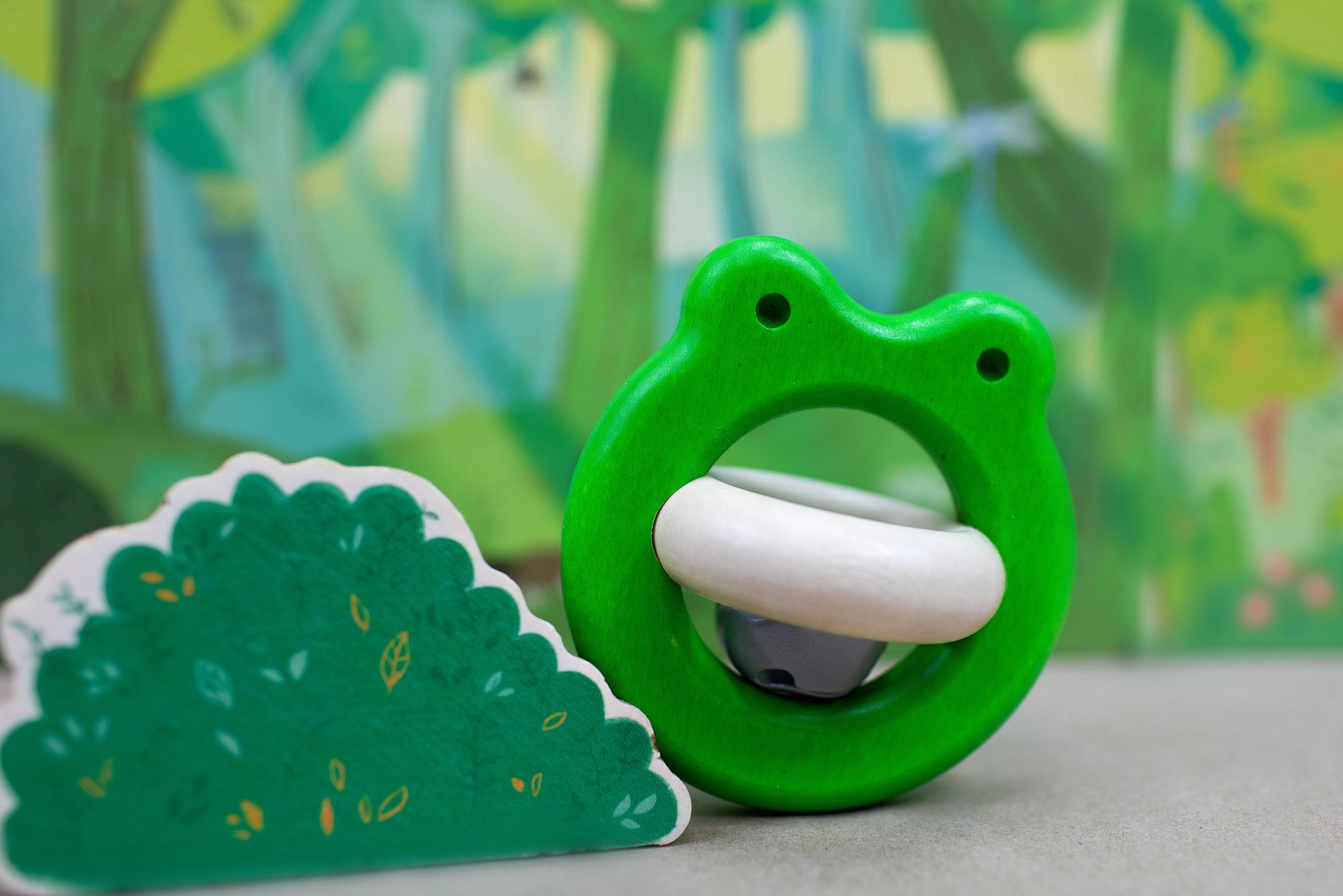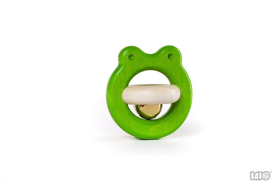 This adorable frog rattle is beautifully crafted and made to keep your child entertained. The soft jingle of the wooden ball will alert you to the child's movements.
