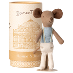 A real ballet dancer. The mouse comes in a beautiful tube with a stand inside you can use if you want to display the dancer at home.