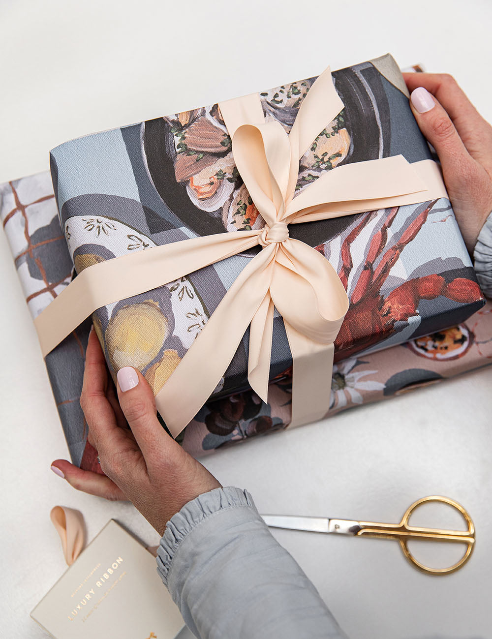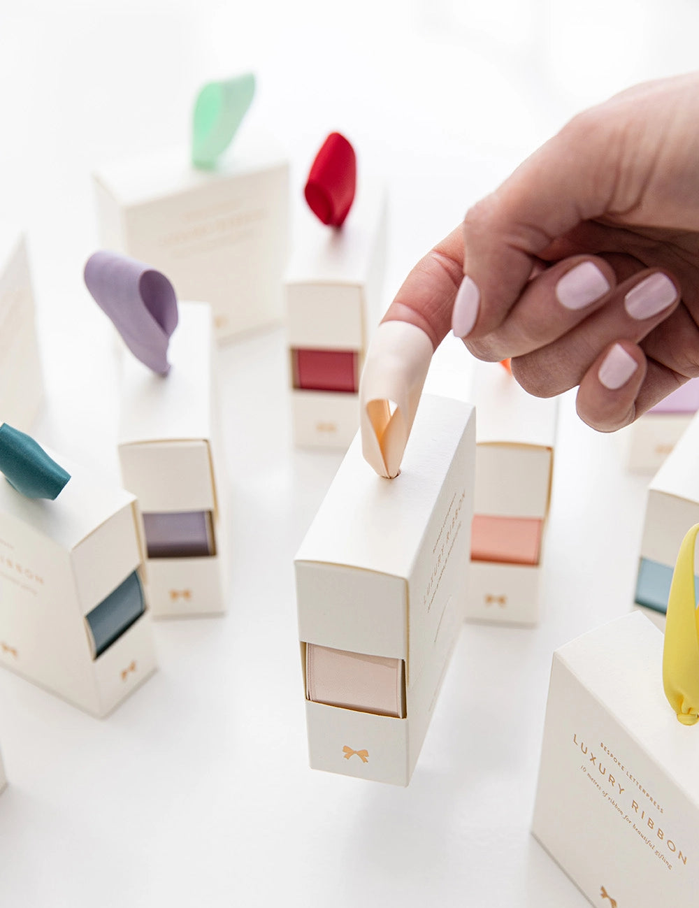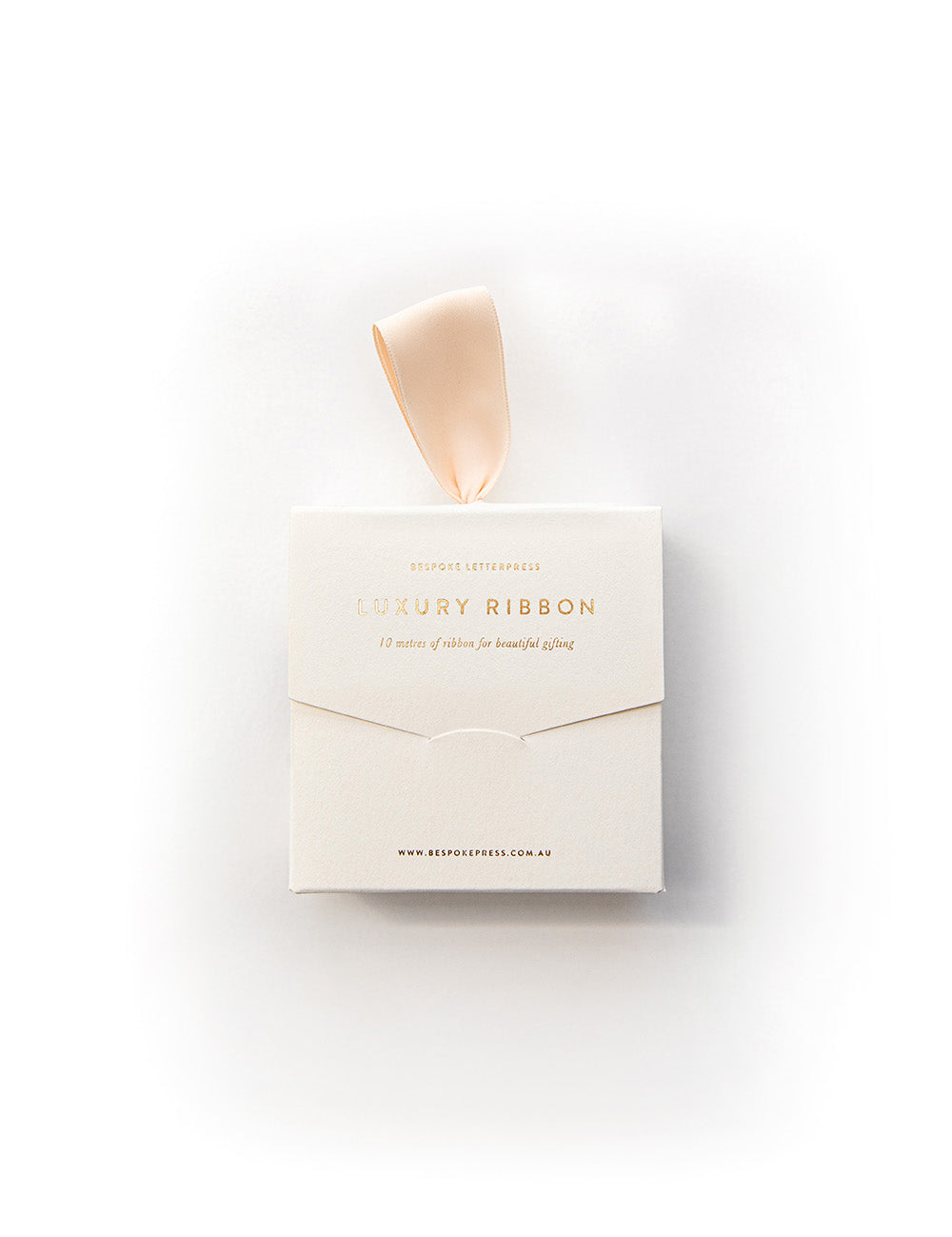 Specification 10 metres of Luxurious Soft Double Faced Silky Satin Ribbon Boxed within a self dispensing gold foil printed FSC environmentally responsible box.