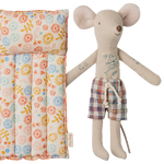 This summer set exist of a cool dad mouse and his air mattress with flower print. He wears checked beach shorts and is ready to relax in the sun on his floating bed.