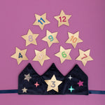 Meet our beautiful new Birthday crown! This luxuriously soft velvet crown comes complete with ten interchangeable metallic gold numbered stars making it the perfect piece to grow with your children year after year!