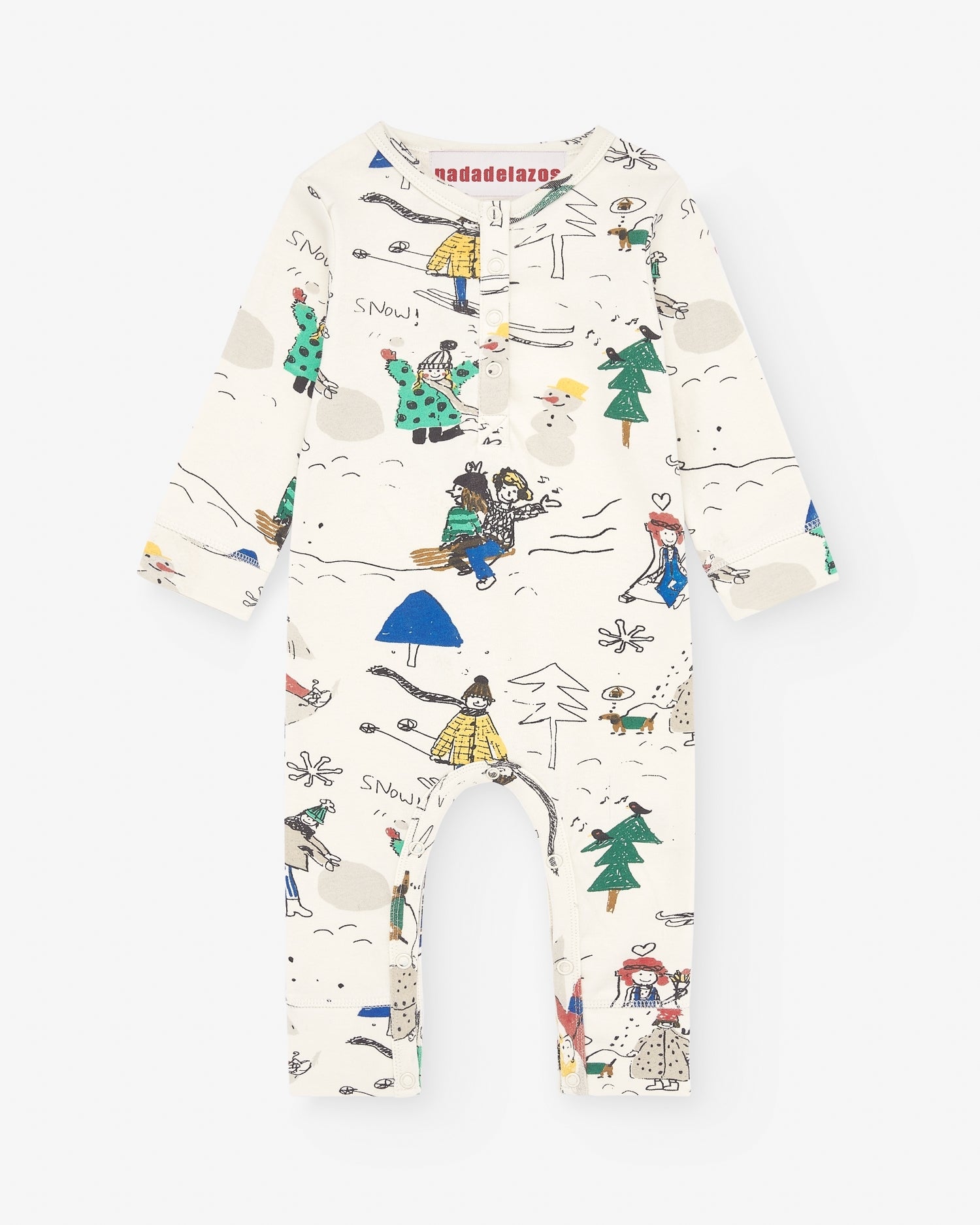 Cream organic cotton body for baby with an Stieseldorf inspired print.