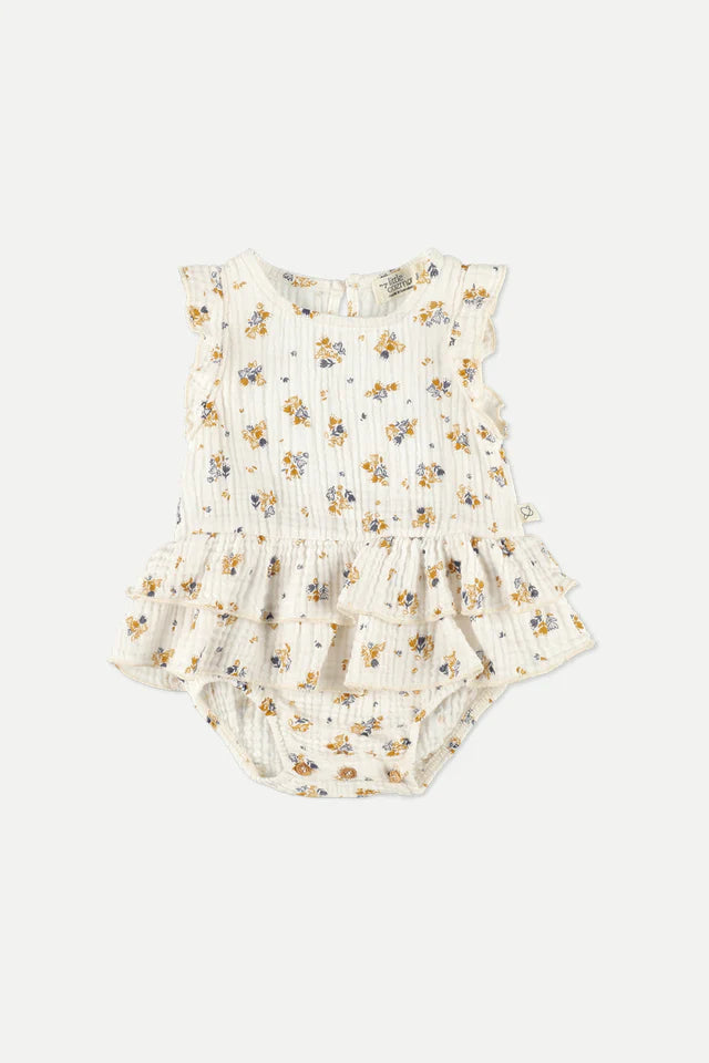 Romper in fluffy, gauzy cotton with a sweet floral print.