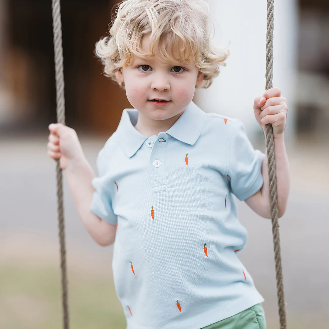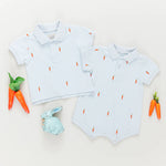 Hop into Easter style! The sweetest little embroidered carrots are sprouting on our Boys Alec Shirt.