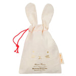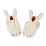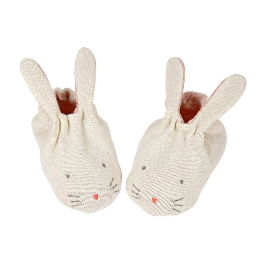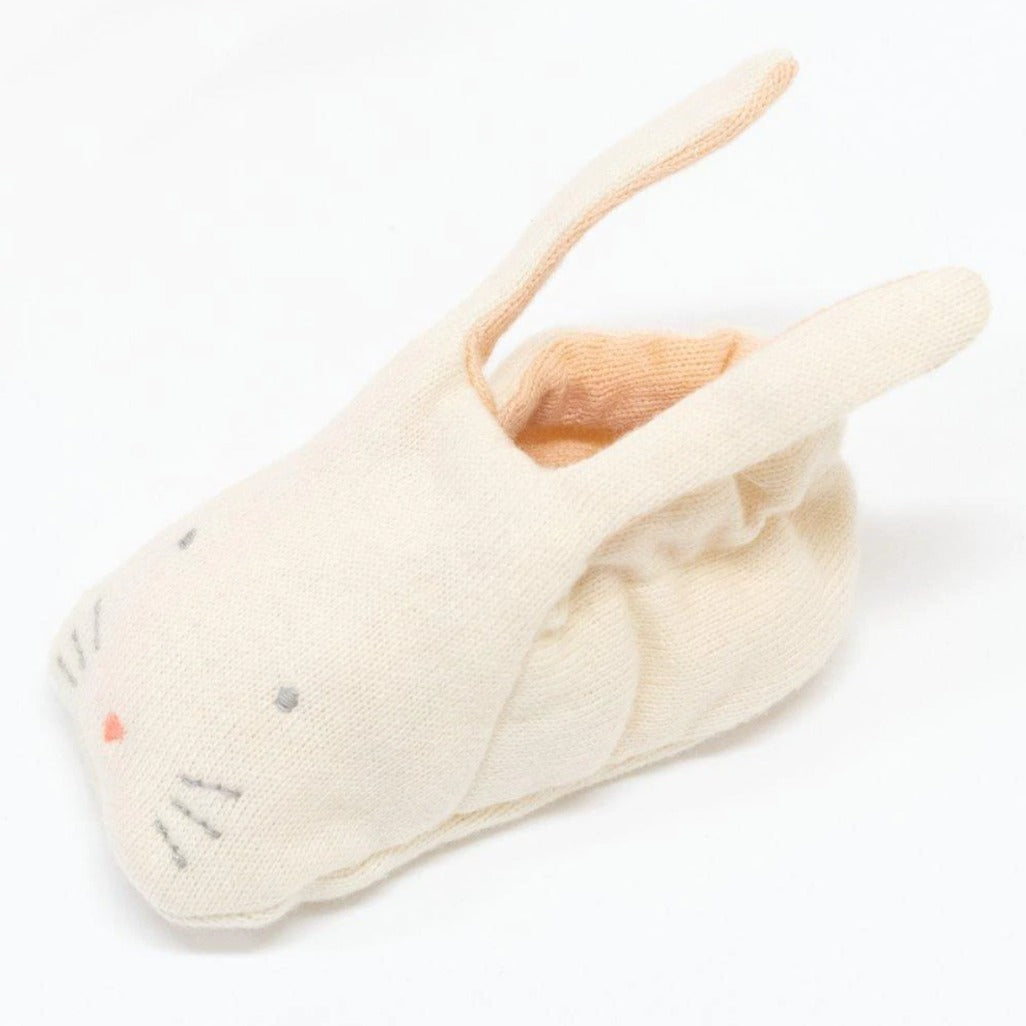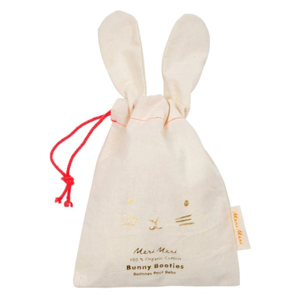 These adorable bunny rabbit booties are carefully crafted from knitted organic cotton with a soft, mint green lining. They have delightful shaped ears and stitched features, and are presented in a beautiful bunny drawstring bag. The perfect gift for a new arrival.