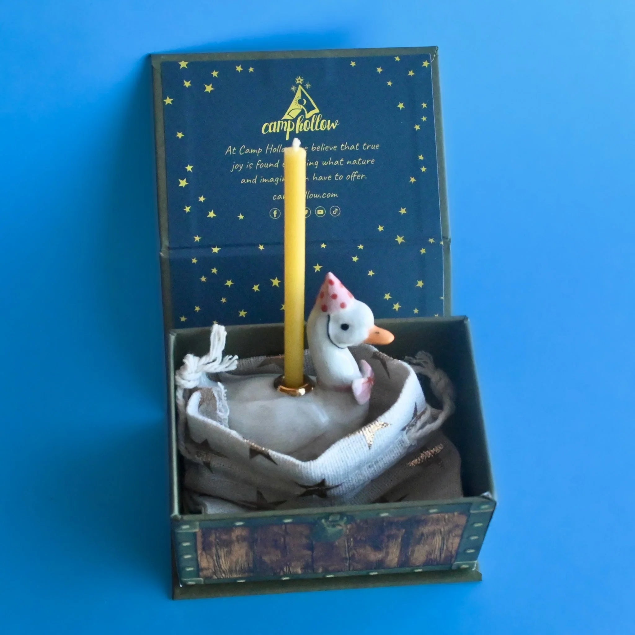 Playfully designed and cheerful in spirit, the Goose Cake Topper is a surefire way to put a smile on anyone's face. When the candle is lit and the warm glow illuminates the figurine's porcelain features, you'll feel transported to a warm and inviting atmosphere where birthday wishes always come true.