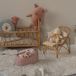 A small portable bed for your soft friends - small Bunny plush and small Safari friends fit perfectly. With this carry cot, it is easy to bring along your friend. Your friend will sleep tight with the soft pillow and under the warm knitted blanket.