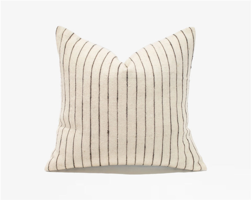 The fabric used to make these pillows are woven with local sheep and goat wool by traditional weavers in rural northern India.