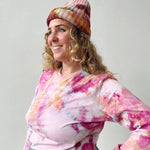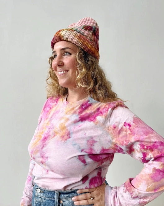 These pieces are lovingly dyed by hand in our backyard studio. Every element from the temperature that day, to the way the wind is blowing, affects the way they come out. It's a truly magical and collaborative process.