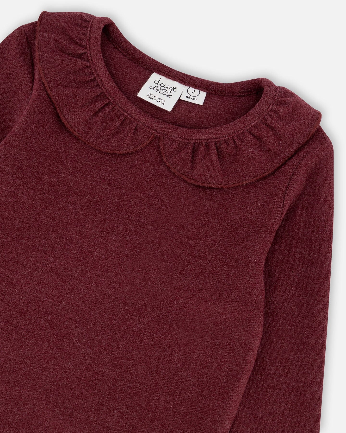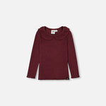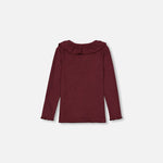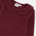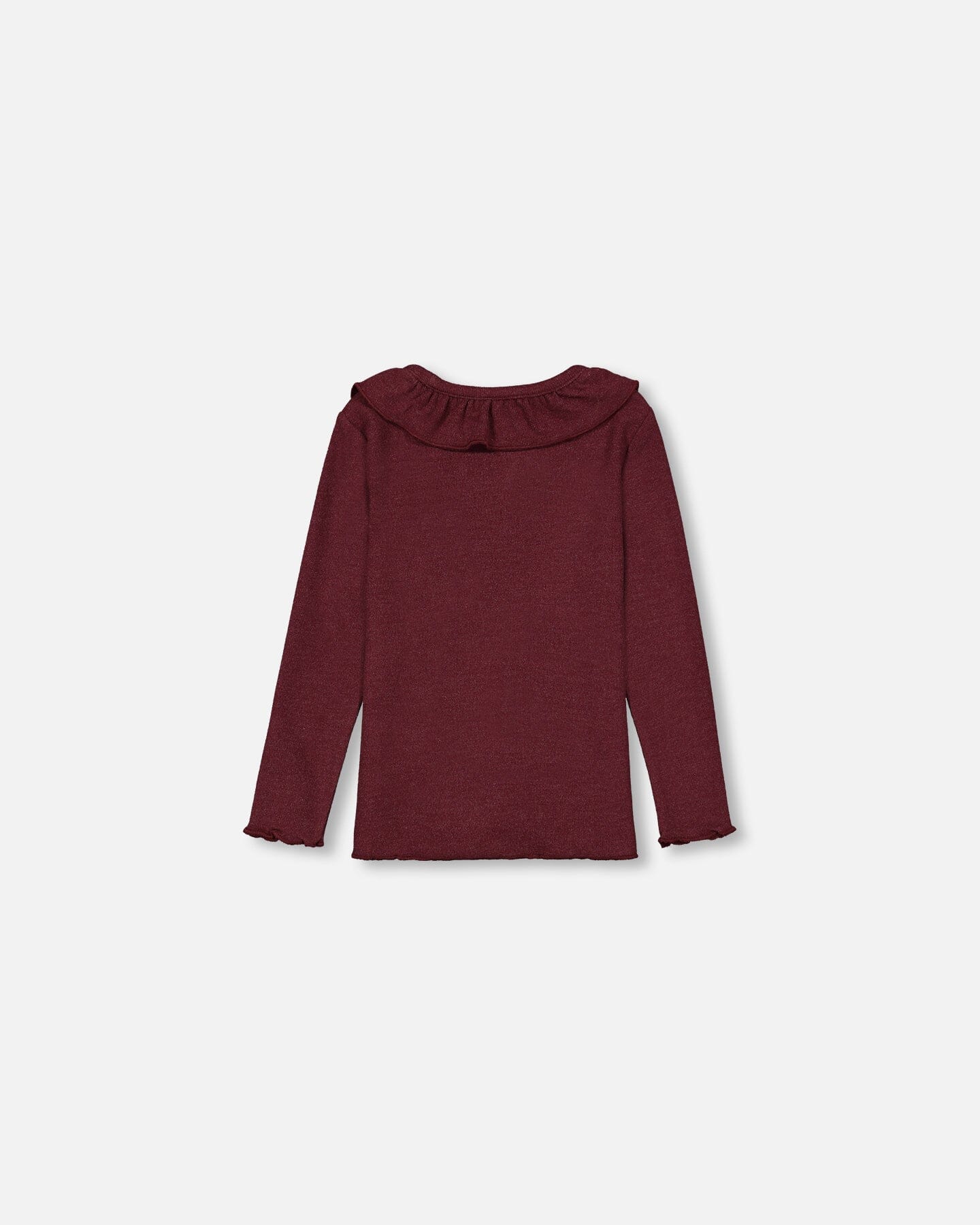 A ruffled, rounded collar lends charming, girly style to our Super Soft Rib Top With Flounce Collar Burgundy. Basic enough to wear with any bottom but unique enough to make a statement, this top is made from a soft poly/rayon/elastane blend with a ribbed texture. It's detailed with long sleeves, a round neckline, and a logo label at the hem.