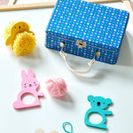 Get creature crafting with this My Pom-Pom Friends kit! Your little one will adore learning the craft and making the five fluffy and friendly pom-pom pals. This fun, portable kit comes with everything you need to create the sweet bunny, bird, koala, panda, and puppy. Inside you'll find five colored yarns, five felt animal forms, a wooden pom-pom maker, and instructions in six languages (English, Dutch, French, German, Italian, and Spanish).