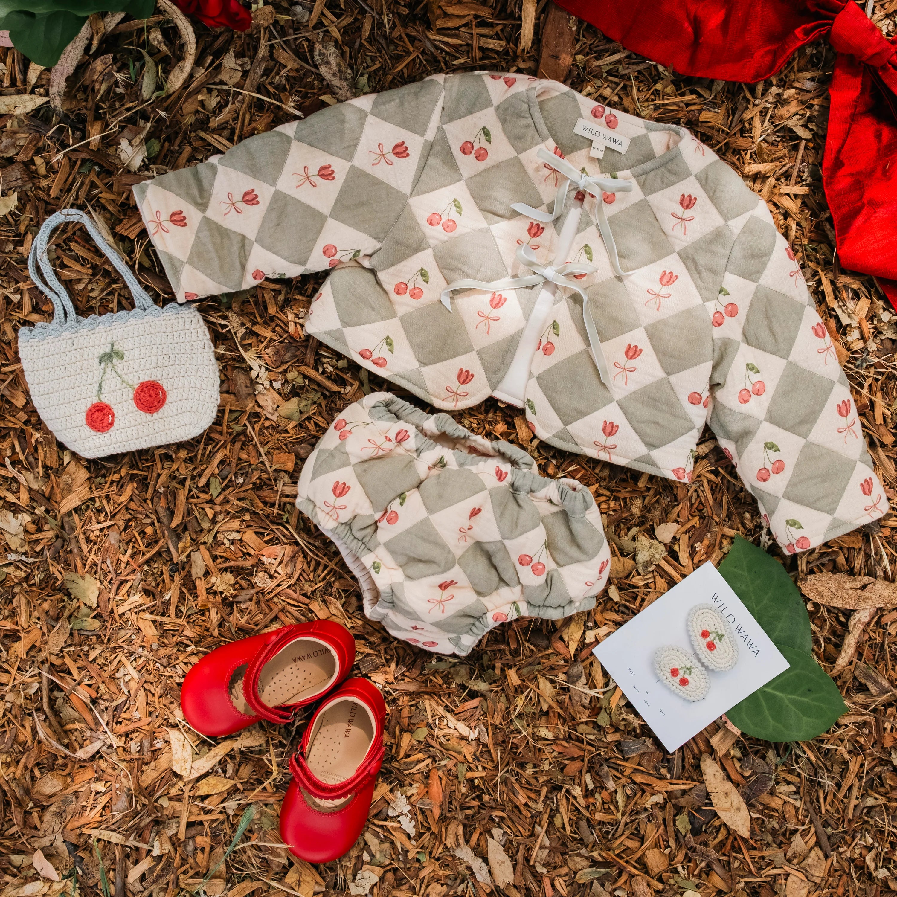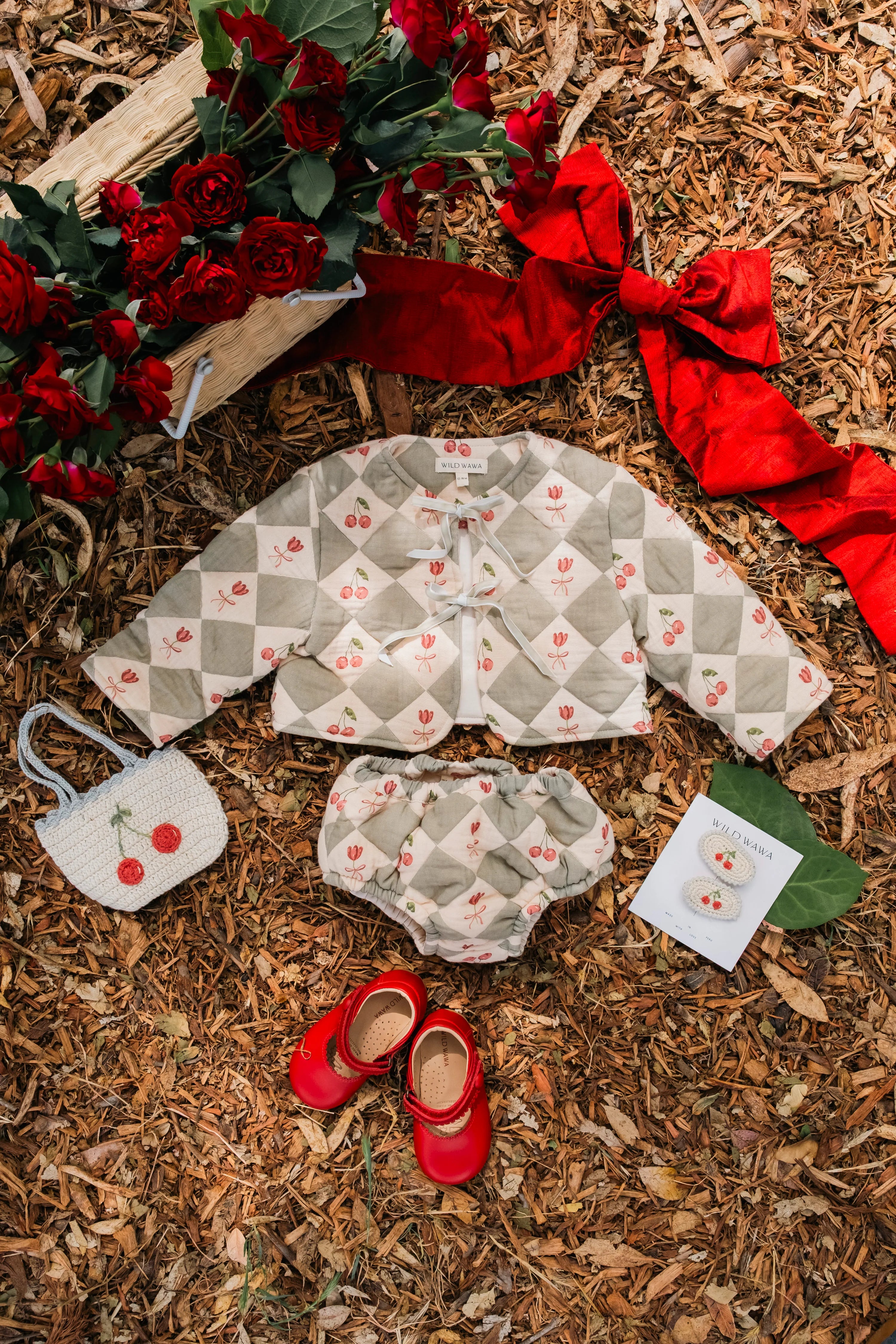Pairs beautifully with our cherry print collection pieces for coordinated perfection.