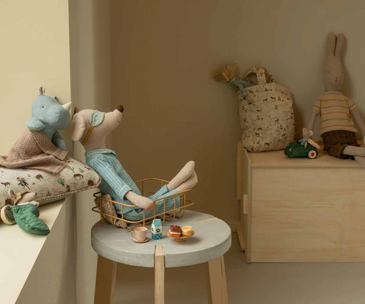 The rectangular cushion comes with 2 different all over printed fabrics and beautiful piping details to complete the look.