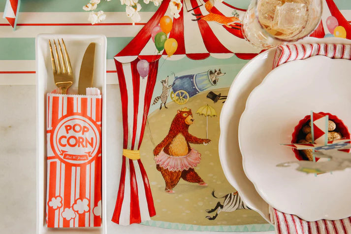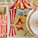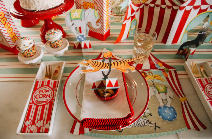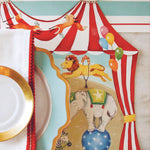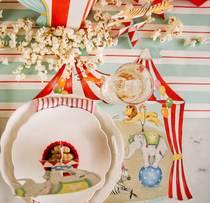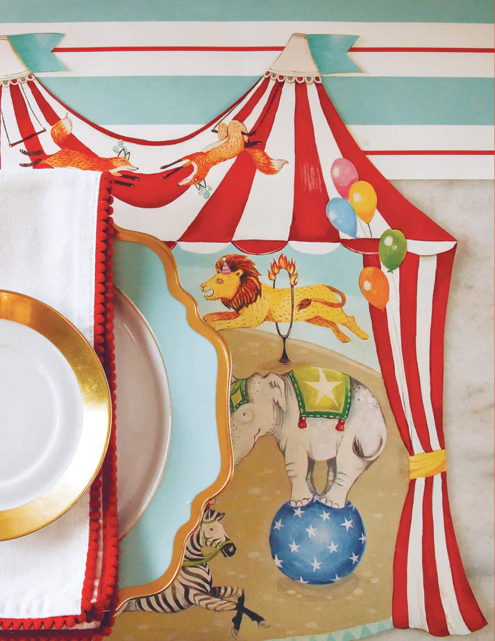 The Die-cut Circus Tent Placemat, designed in collaboration with artist, Elizabeth Foster, will be a hit at your next party or gathering.