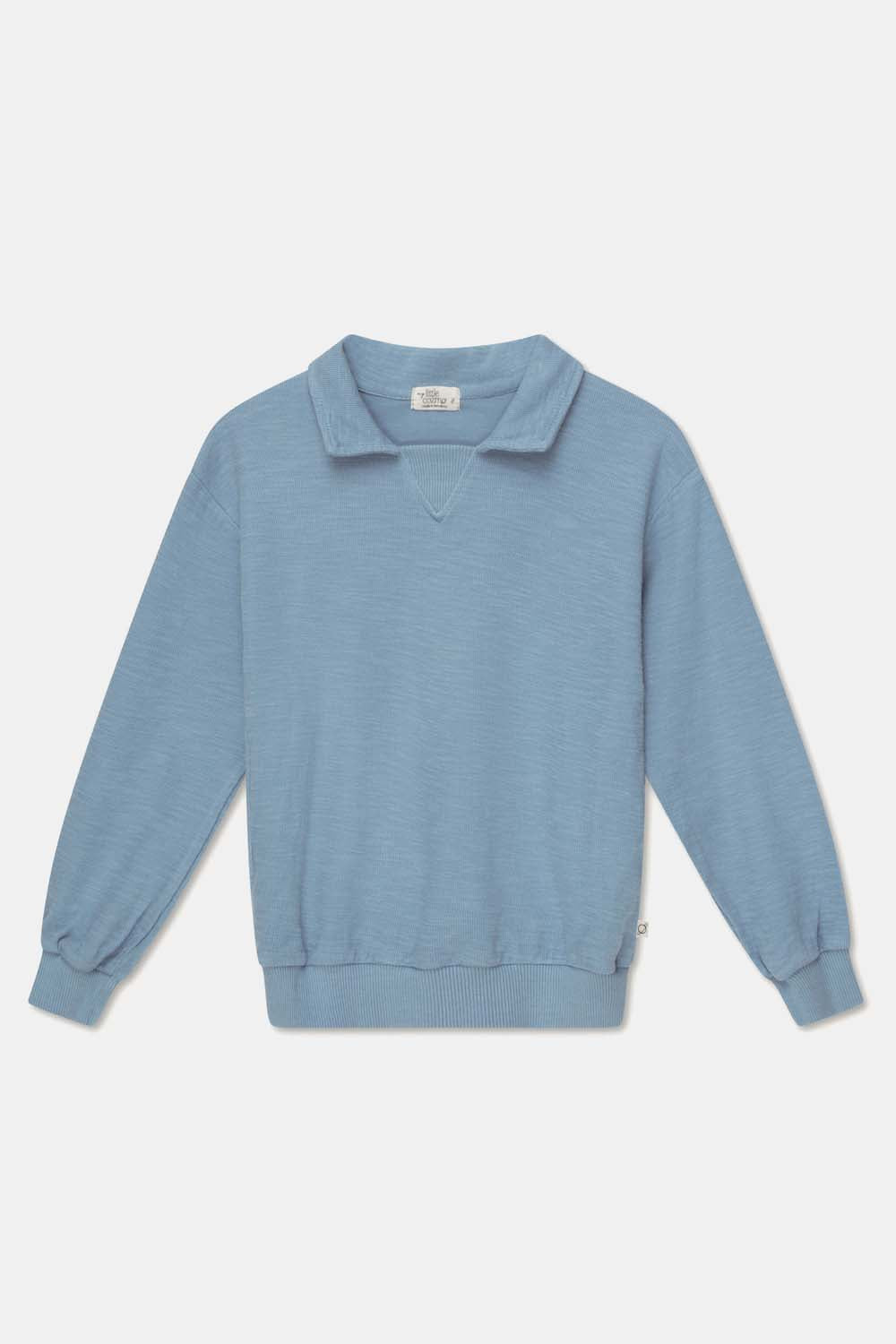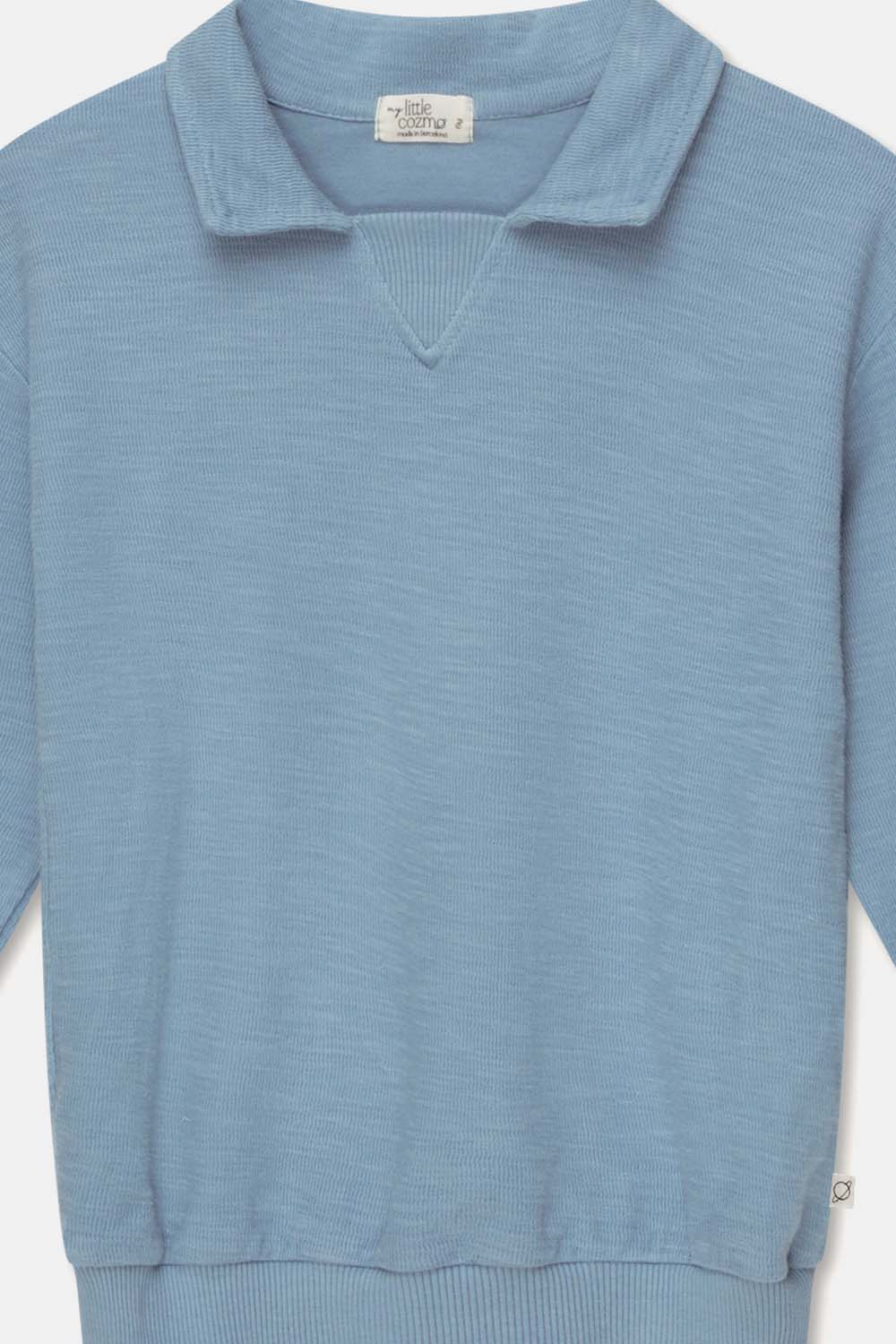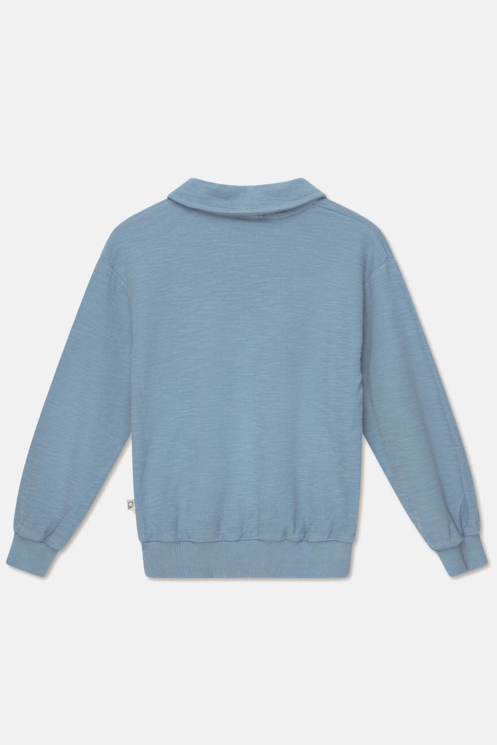 Comfy in style. This organic double-face polo sweatshirt is a super versatile piece for everyday wear. It features a polo collar with a ribbed V-insert and rib at cuffs and hem. This double-face polo sweatshirt is knitted in 98% OEKOTEX-certified organic cotton and 2% polyester.