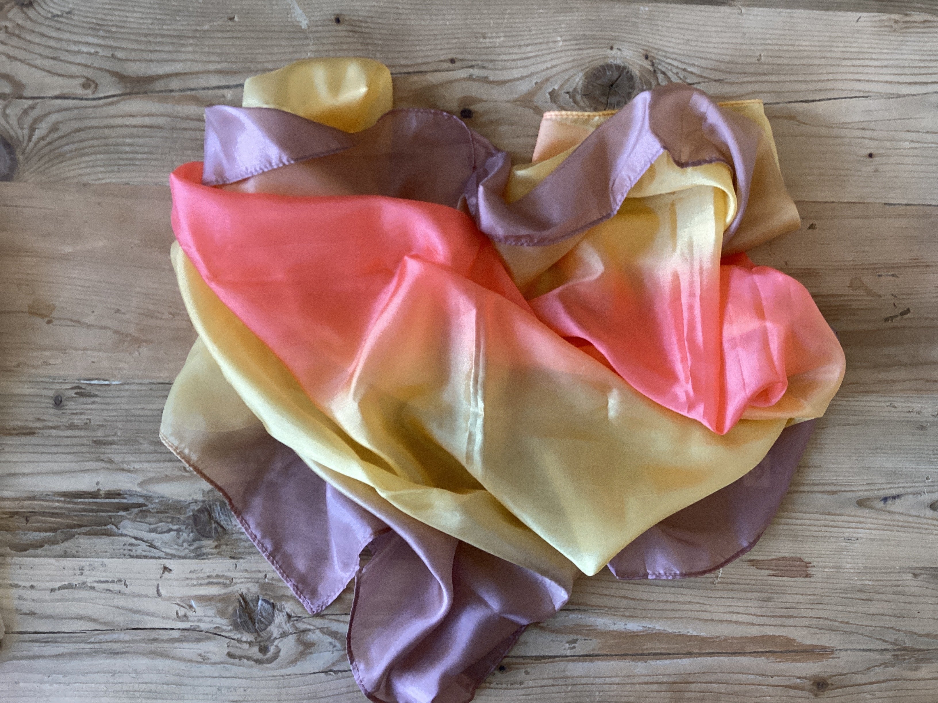 Earth Playsilks are painted by hand on 35 x 35-inch squares made from gorgeous, lightweight (5 momme) 100% pure mulberry silk.