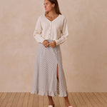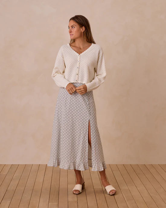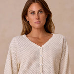 Our Ella Cardigan is the perfect layer to any outfit! Designed with sweet scalloped trim and coconut front buttons.