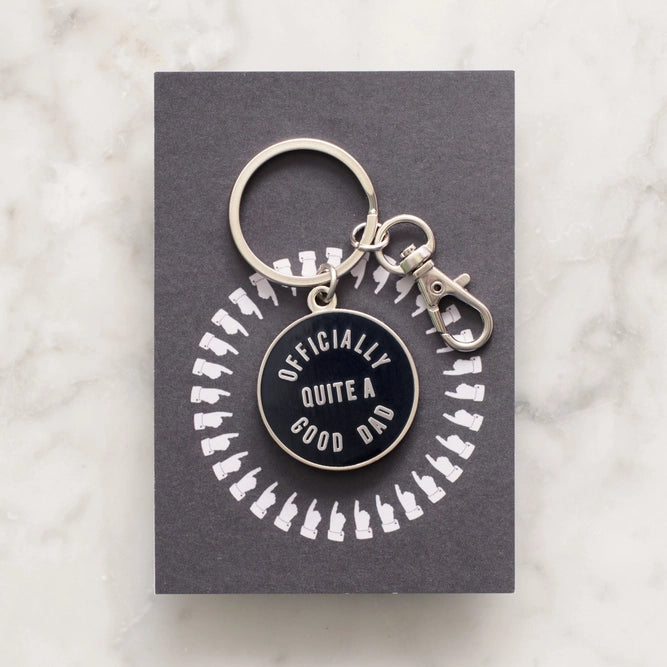 If your dad is pretty good why not jazz up his keys with this enamel keyring so he never forgets it! A lovely keychain, featuring our hand drawn 'Officially Quite a Good Dad' design.