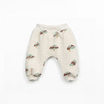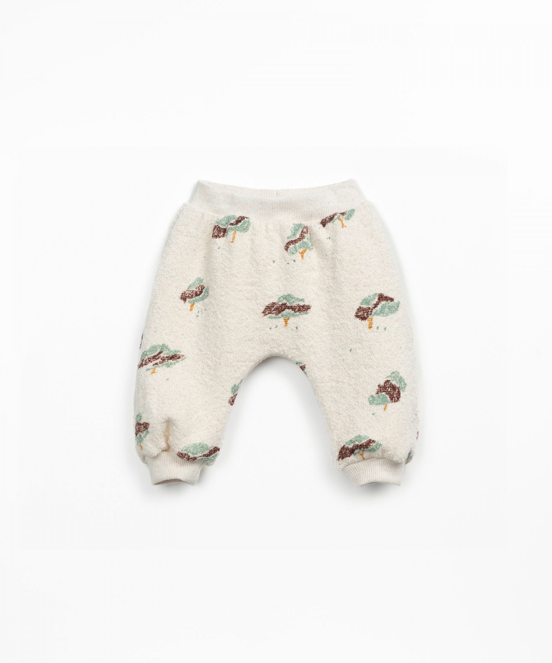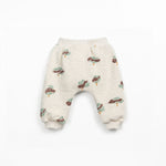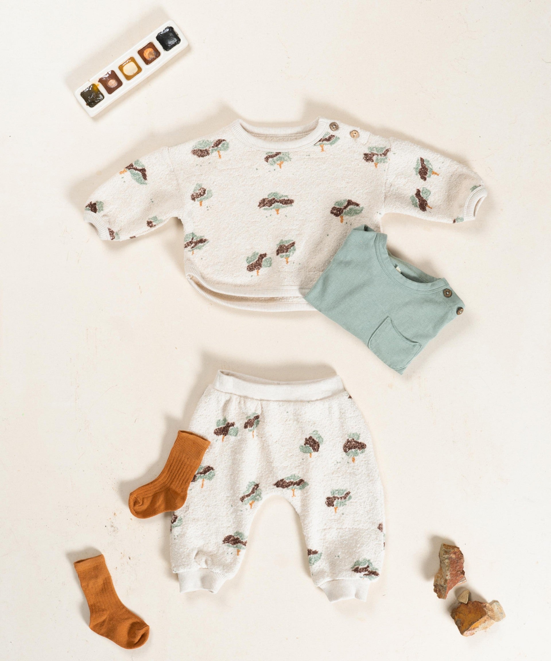 These pants are made from jersey fabric with a blend of organic cotton and regenerative cotton, in an off white color.