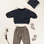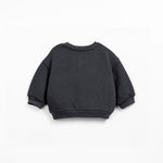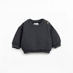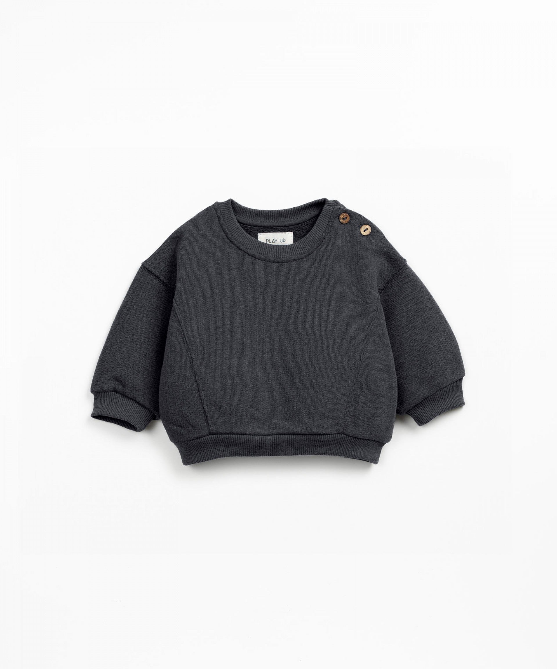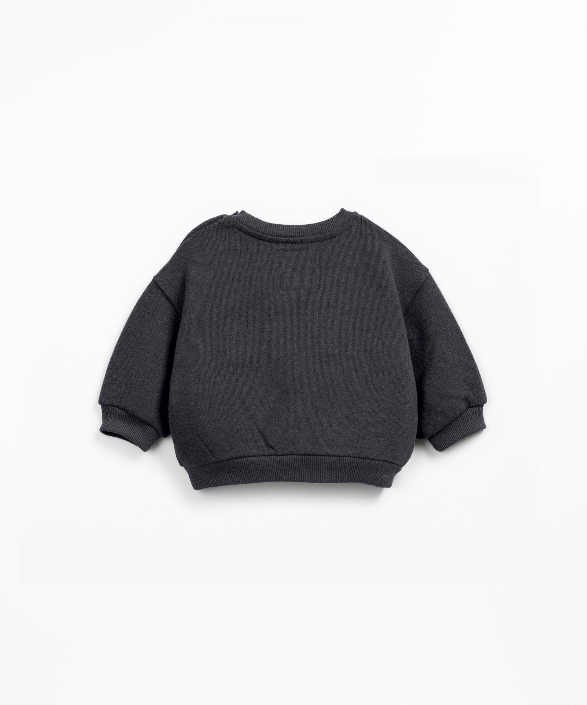 This fleece sweatshirt is made of jersey with a mix of cotton, recycled cotton and recycled polyester, in a dark grey color.
