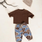 They feature elasticated cuffs and waistband, a decorative drawstring, and our mountain print.