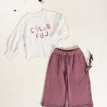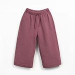 These fleece trousers are made of jersey with a blend of cotton, recycled cotton and recycled polyester, in a dark pink color.