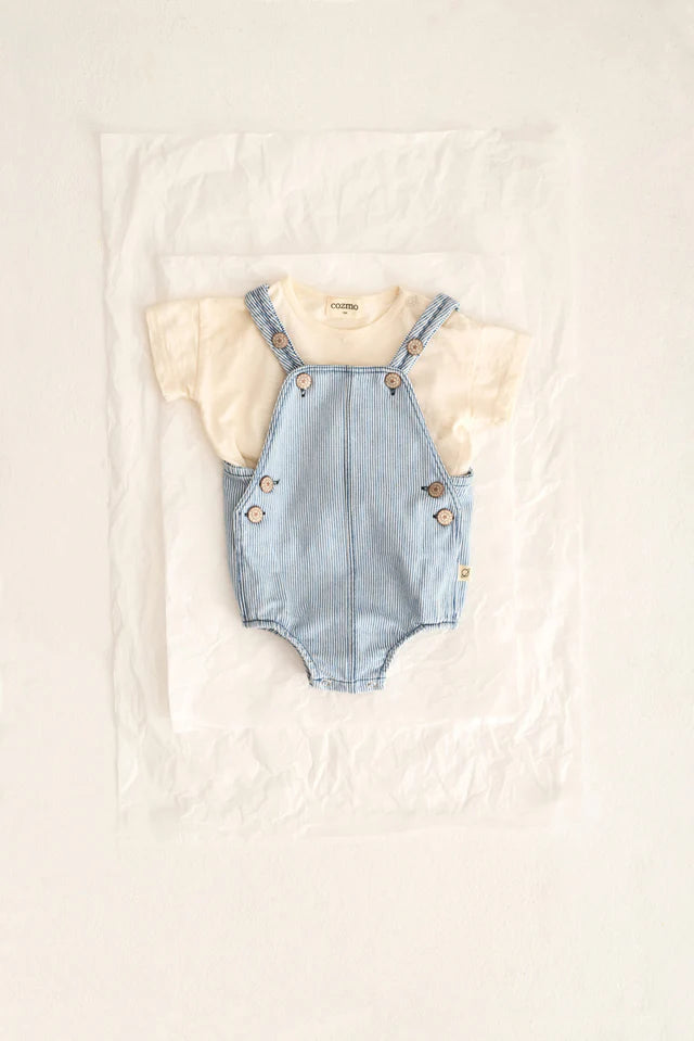 Fine Striped Denim Baby Romper || Blue