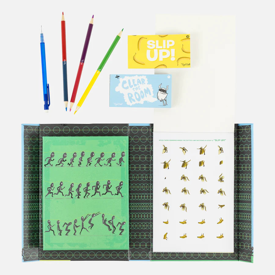 Kids are walked through the basics of animation including planning and storyboarding; learning how to create strong narrative arcs; and illustrating human movement and emotions. Also including a very handy ideas generator and the tools to take flip book making into the world beyond, this is the perfect activity set for kids who love drawing and storytelling.