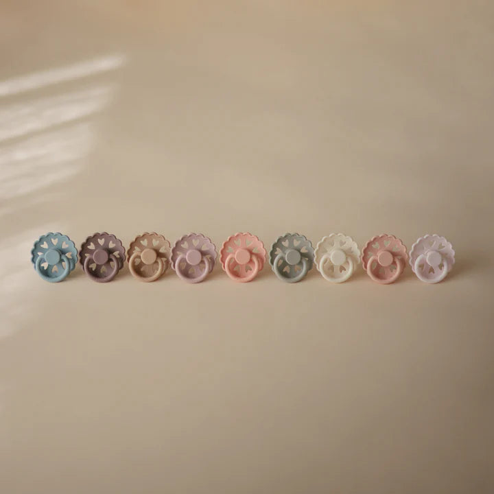 The FRIGG Fairytale rubber pacifiers are thoughtfully designed for your baby's comfort with natural latex and soothing properties. Each pacifier color draws inspiration from a timeless story by Danish author Hans Christian Andersen.