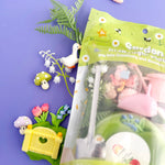 Includes: 8 oz Green (Apple) KidDough with Hidden "Garden" figurines (Smiling Mushroom and Garden Flowers), Garden Goose, Mushroom Friend, Shovel, Watering Can, Snail Form filled with a Butterfly, Dragonfly and Snail Charms and Colorful Flowers