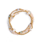 Gem and Pearl Miyuki Stretch Bracelets Set || Morganite