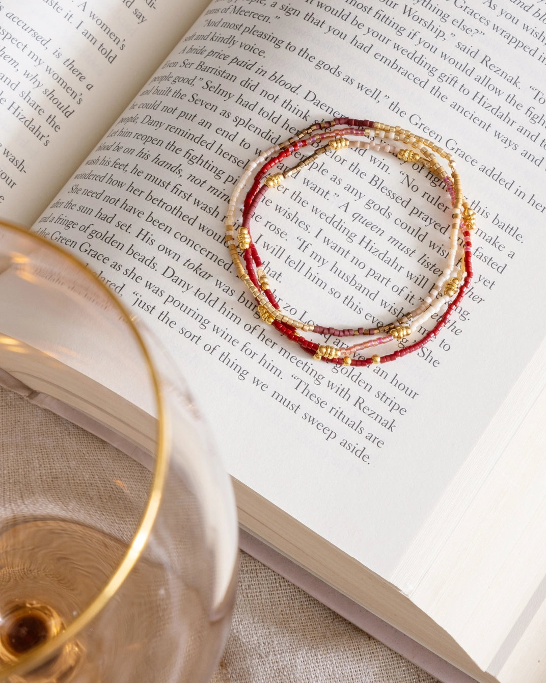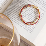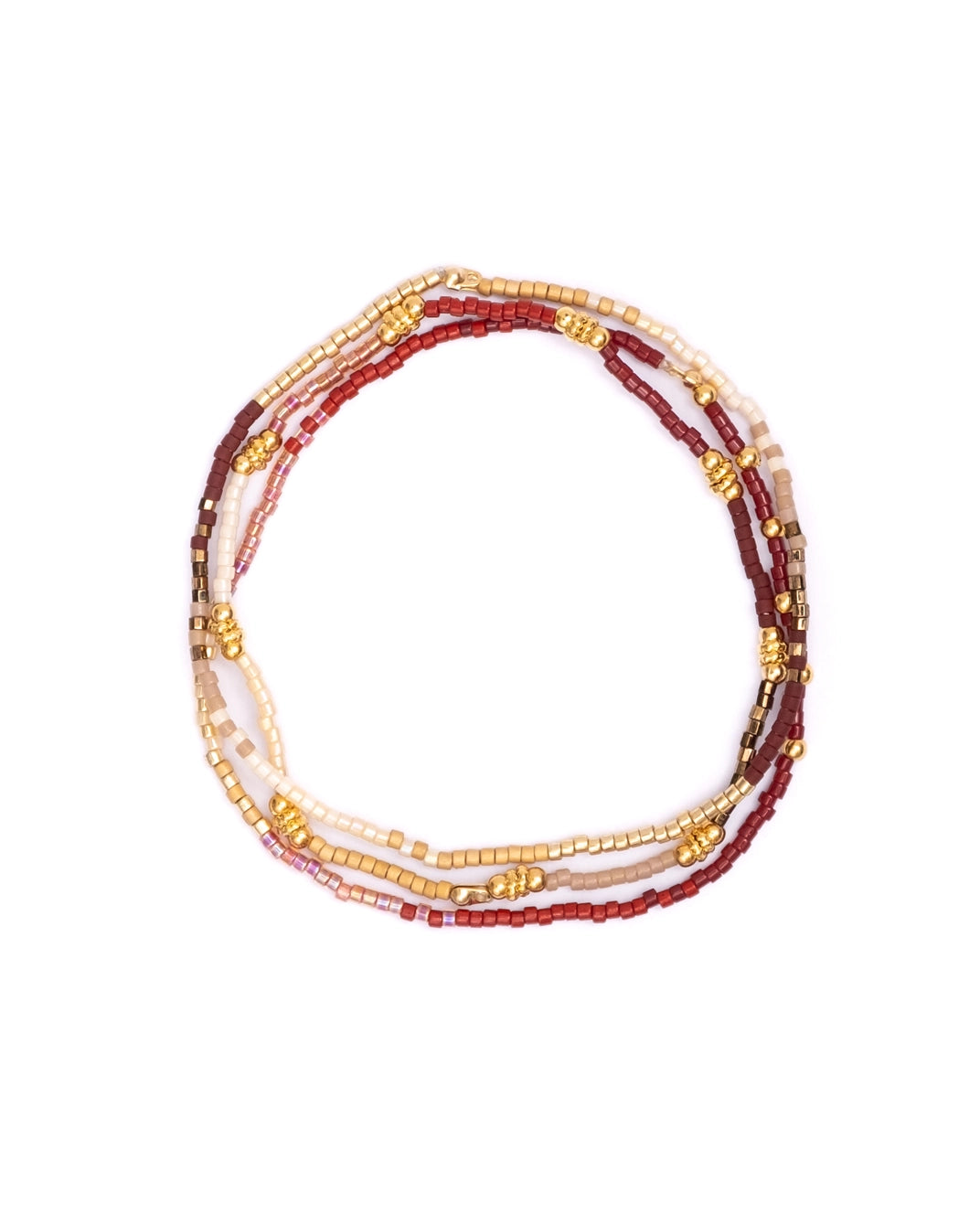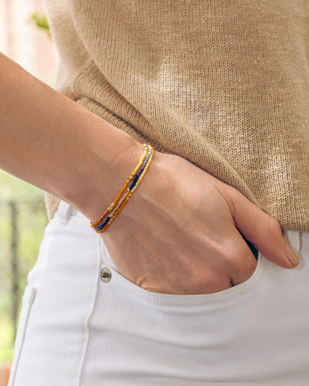 Elevated and sophisticated, this stretch bracelet trio is made from premium Japanese Miyuki glass beads and gold-plated beads.