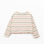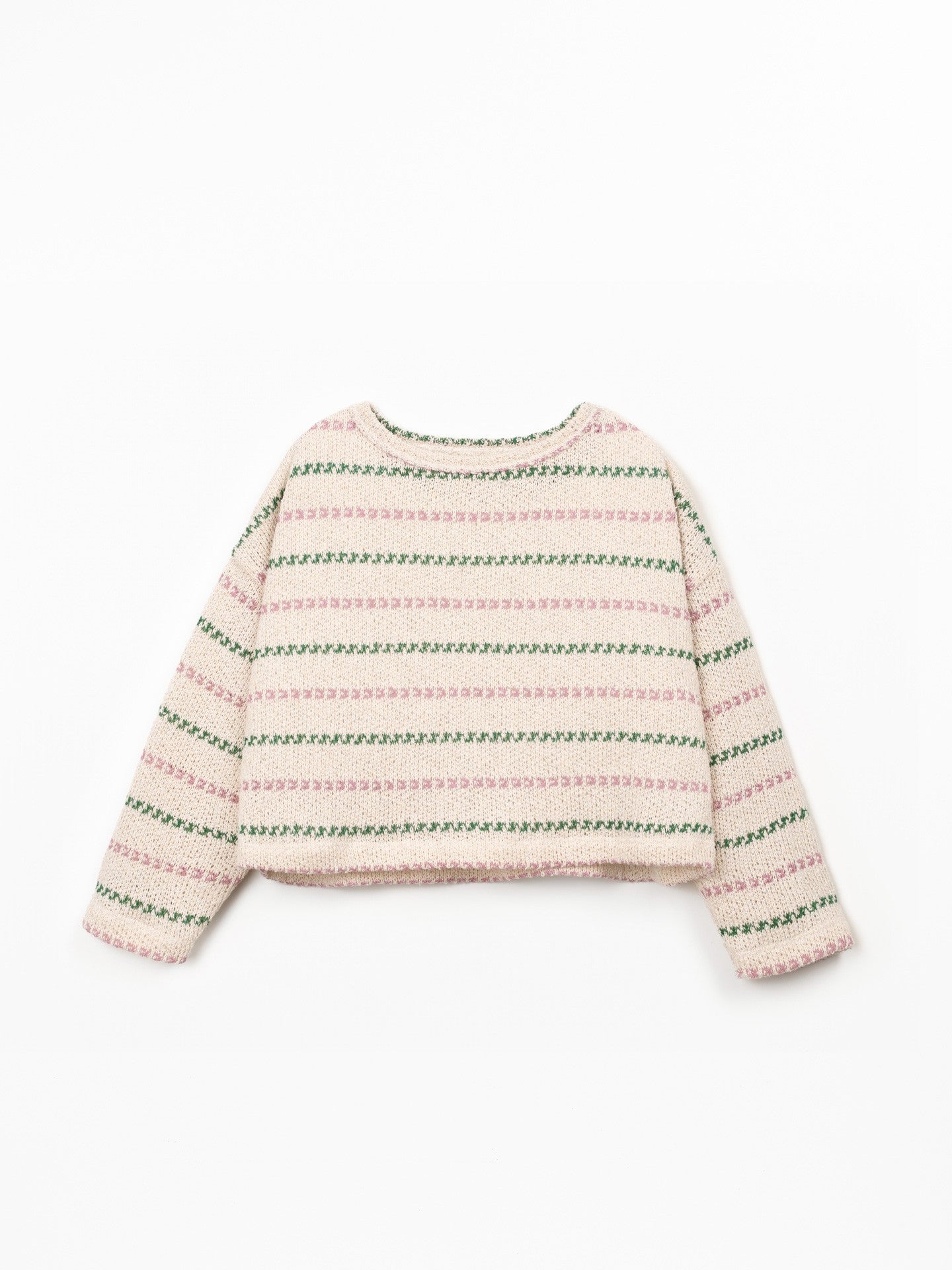 This sweatshirt is made in jersey with a mix of cotton and recycled cotton, in Dark Pink color. It has long sleeves, a round neckline and our striped pattern.