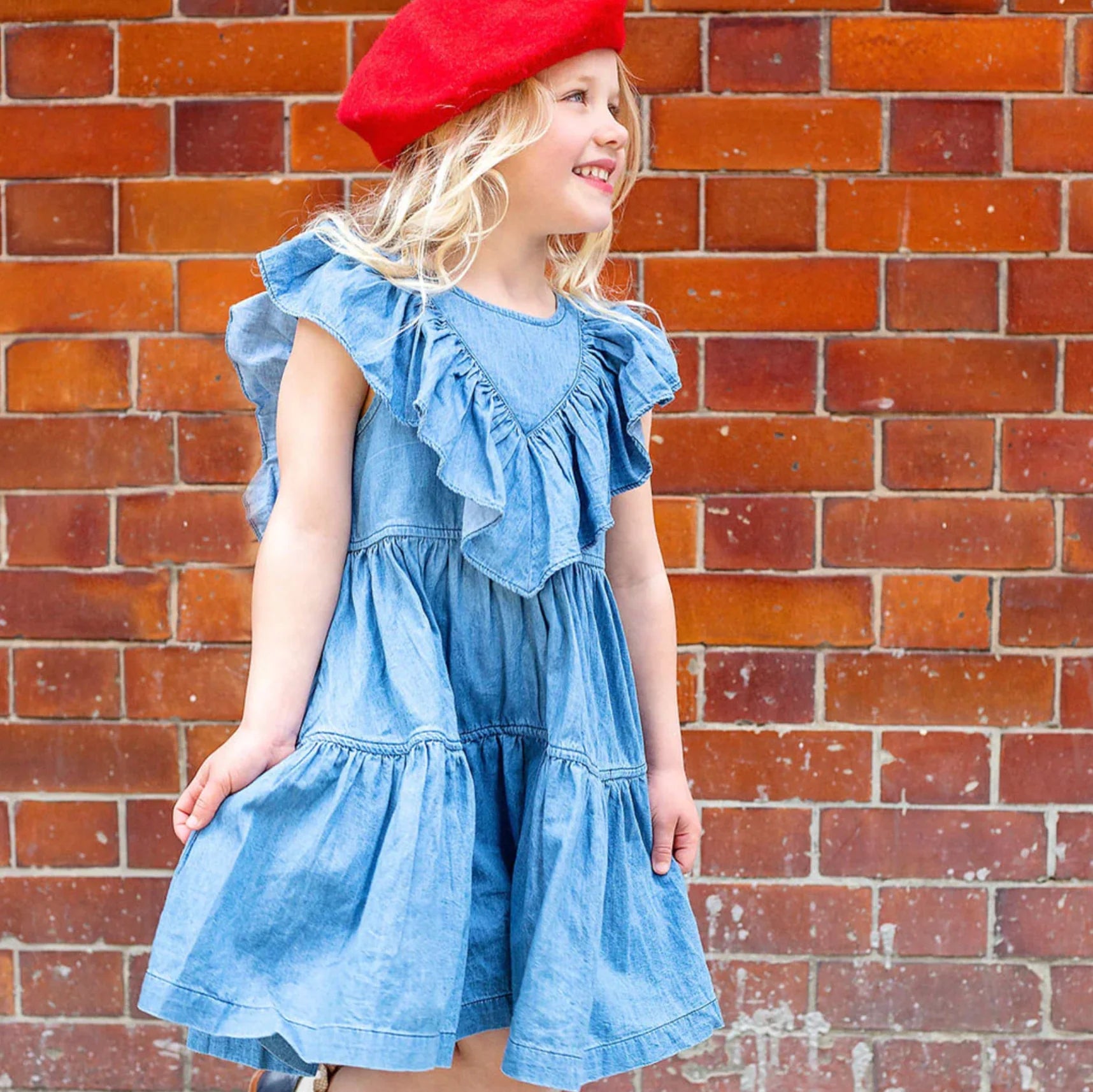 Our Girls Raphaela Dress, fashioned in an easy to wear Chambray, is a go-to for Fall, seamlessly moving from the playground to family dinner.