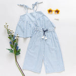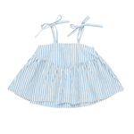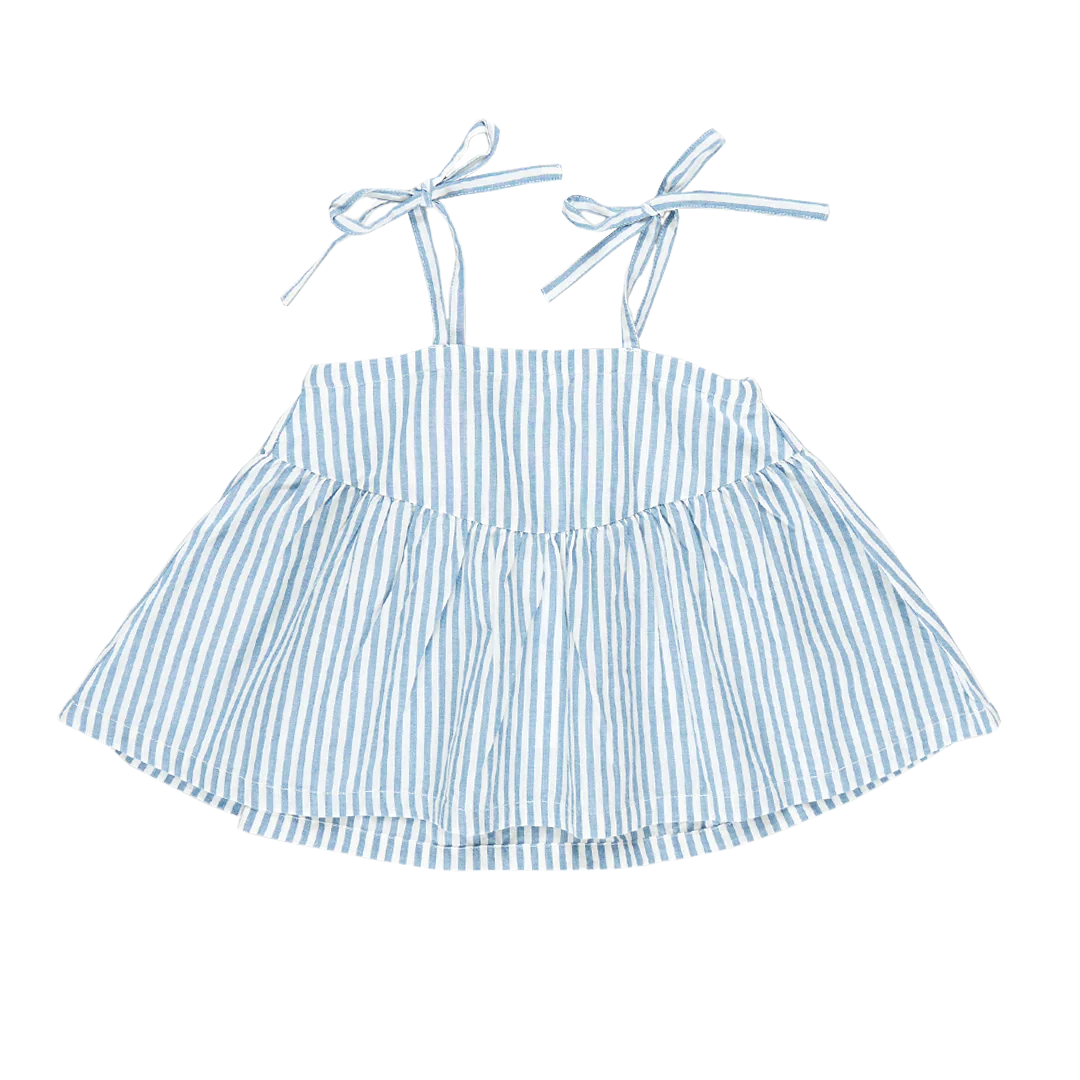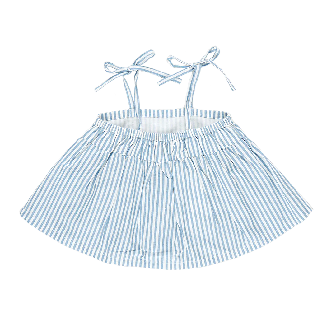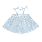 Show us your stripes! Vertical stripes in blue and white lend a seaside vibe to the Girls Stella Top. Adjustable tie shoulder straps and elastic at back allow your child to grow with this piece.