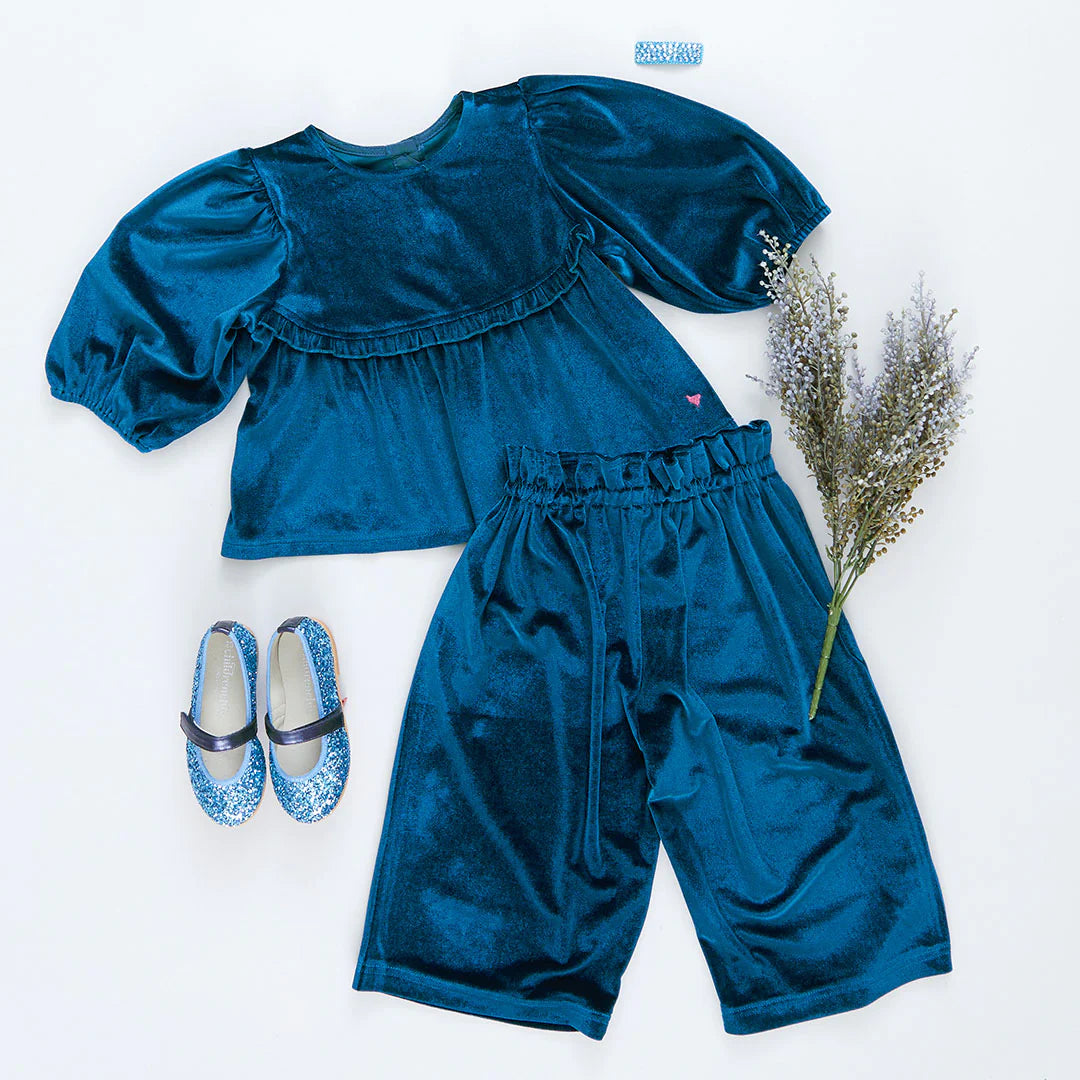 Velour Vibes! The Girls Theodore Pant takes on an elegant air when crafted in plush jewel-toned velour. The comfortable elastic waist and flowy ankle-length wide leg make this stylish pant easy to wear.