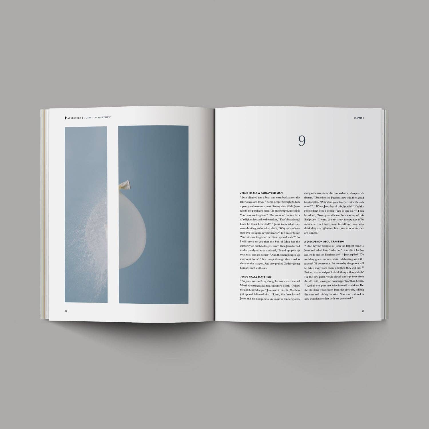 All four Gospels (Matthew, Mark, Luke, and John) in one 480-page book, hardcover Smyth-sewn bound, and printed in full color on uncoated paper in Canada.