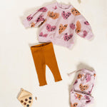 It features a round neckline, dropped shoulders, elasticated cuffs and hem, and our heart print design.