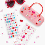 Features 100+ heart, lip, and candy-themed gem stickers for customizing and decorating.